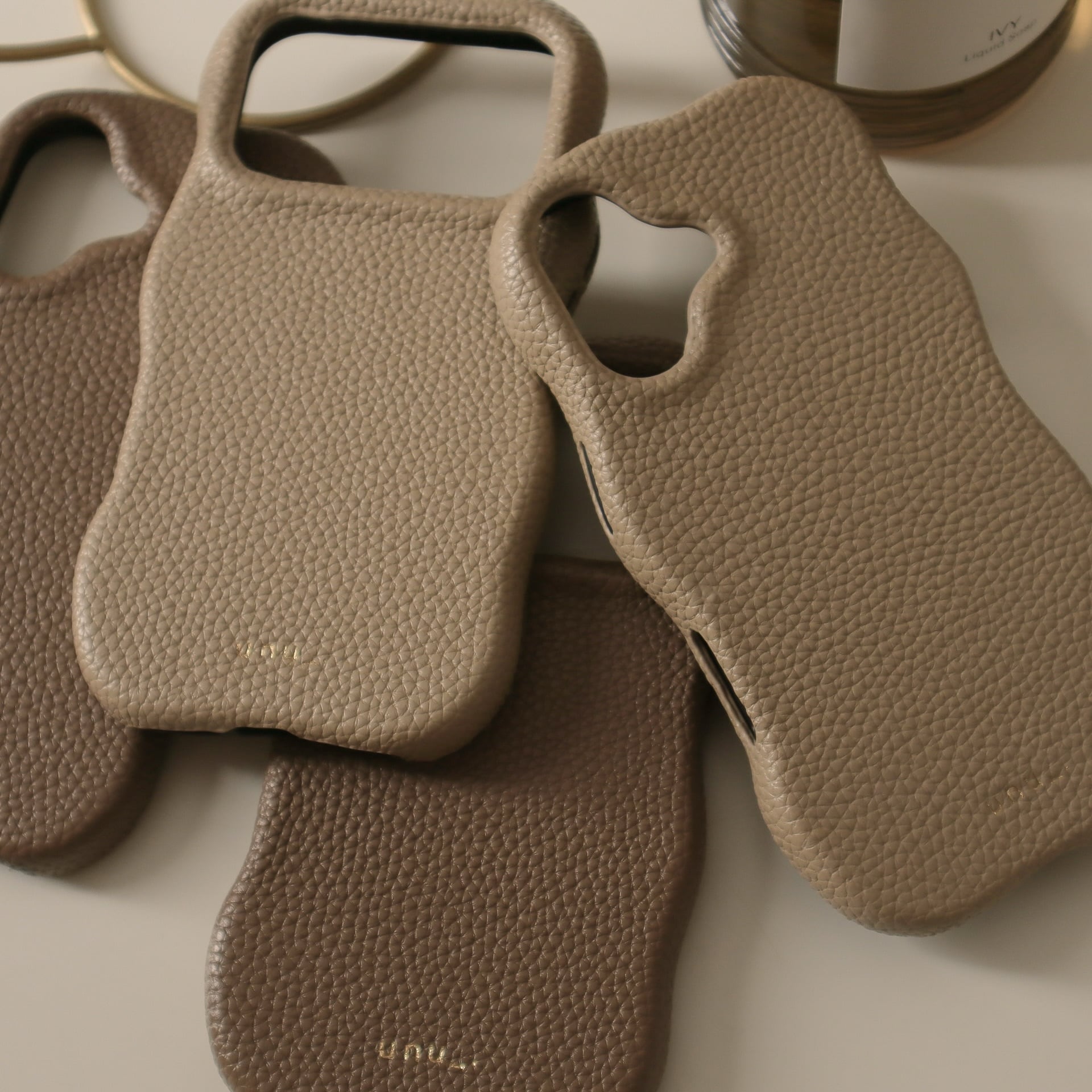 melty leather ¥3,190 当店でしか手に入らない、いびつなレザーケース。波打つ形とPUレザーで手に吸い付くように持ちやすく、何より可愛過ぎて見ているだけで癒されます。