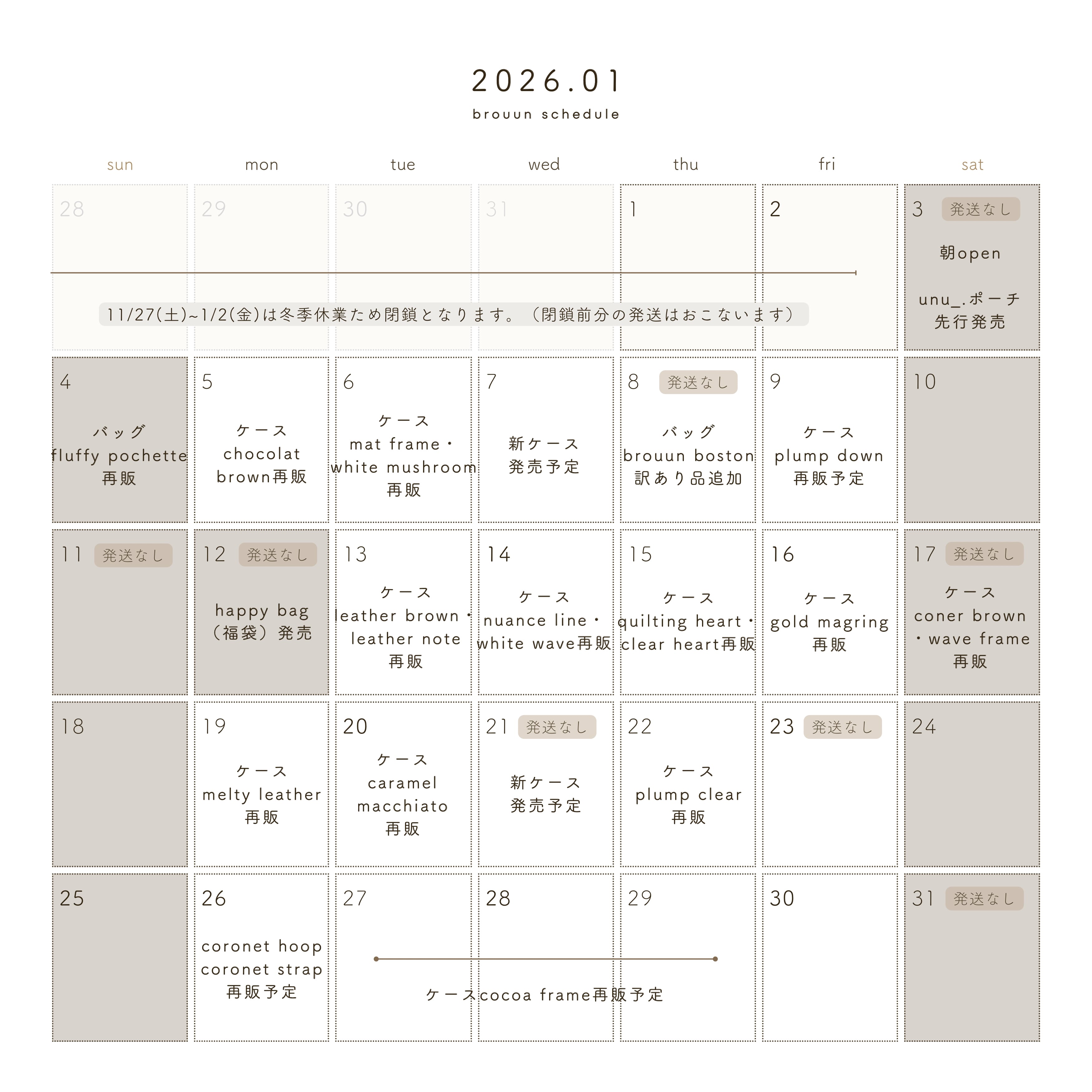 営業・発送状況新年明けましておめでとうございます。昨年はご愛顧いただき誠にありがとうございました。本年もbrouunをよろしくお願い申し上げます。