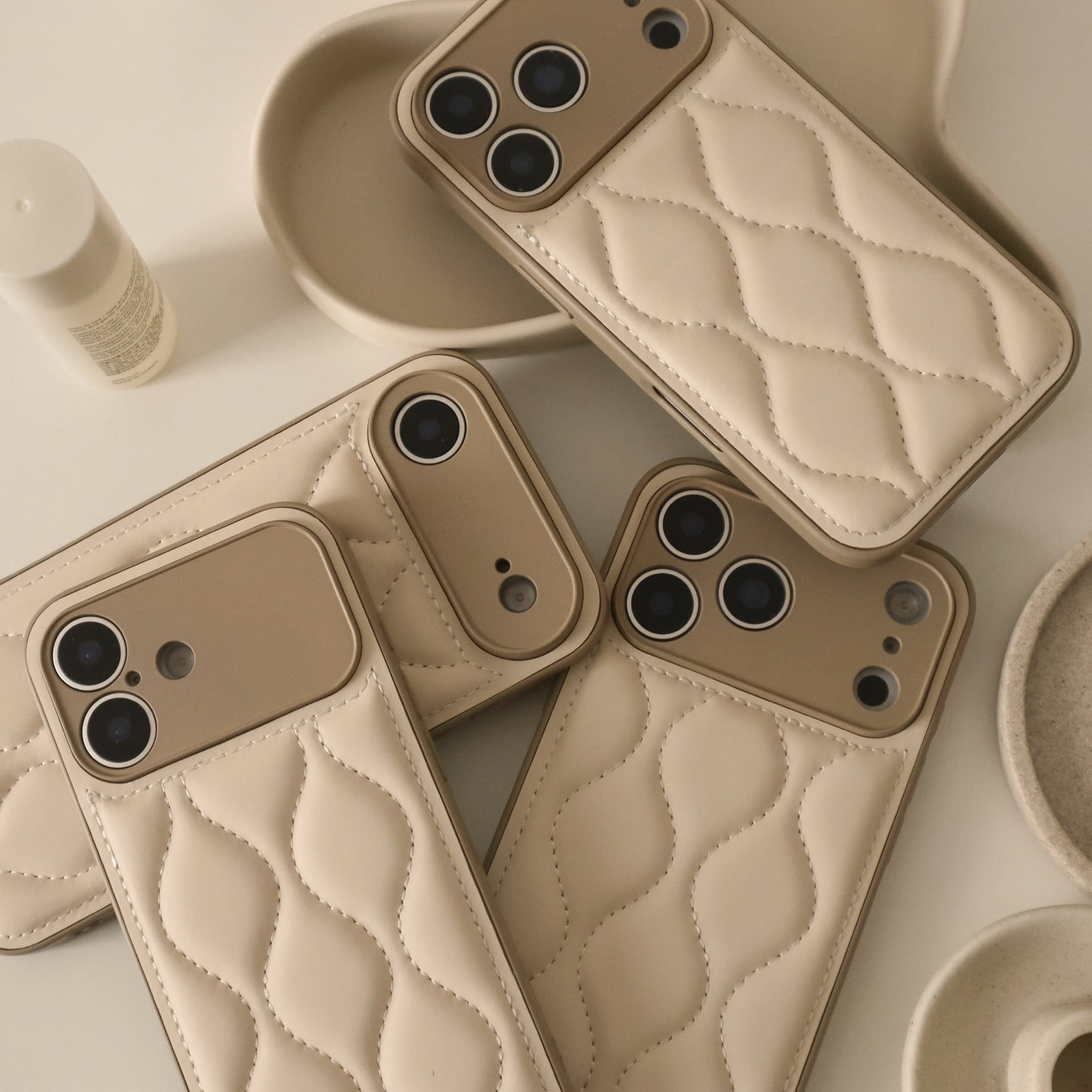 quilting ivory ¥2,490 キルティング生地が可愛く、 ぷっくり感もたまらない癒し系ケース。 人気ランキングは殿堂入り、そしてサイドボタンも押しやすいと大好評です♩ ・全てのケースはこちら ・iPhone17シリーズ取扱ケースはこちら ・マイナーサイズ(12・13mini/11pro/14・15plus/16e)はこちら