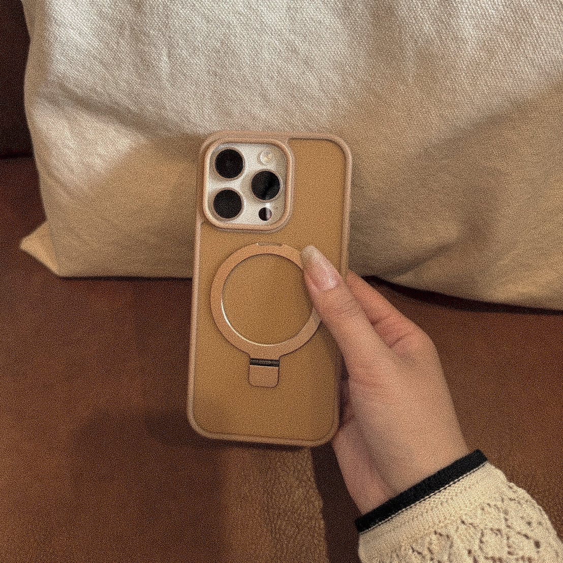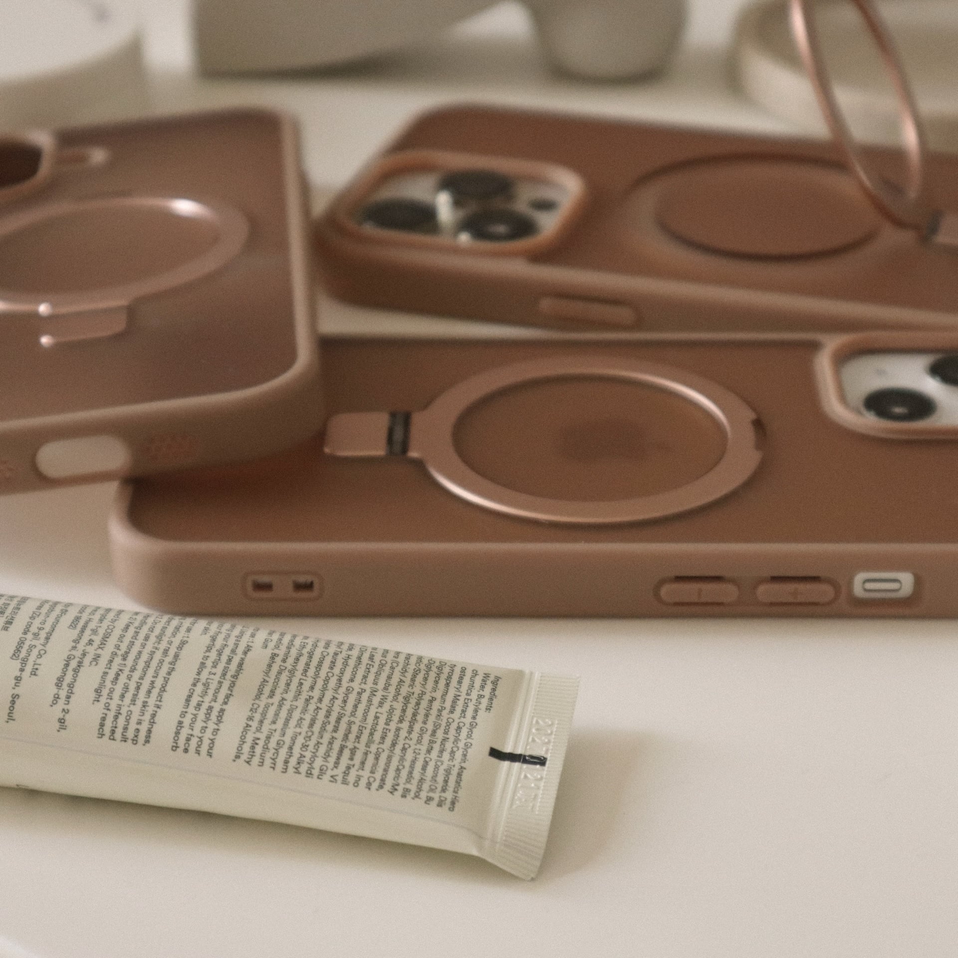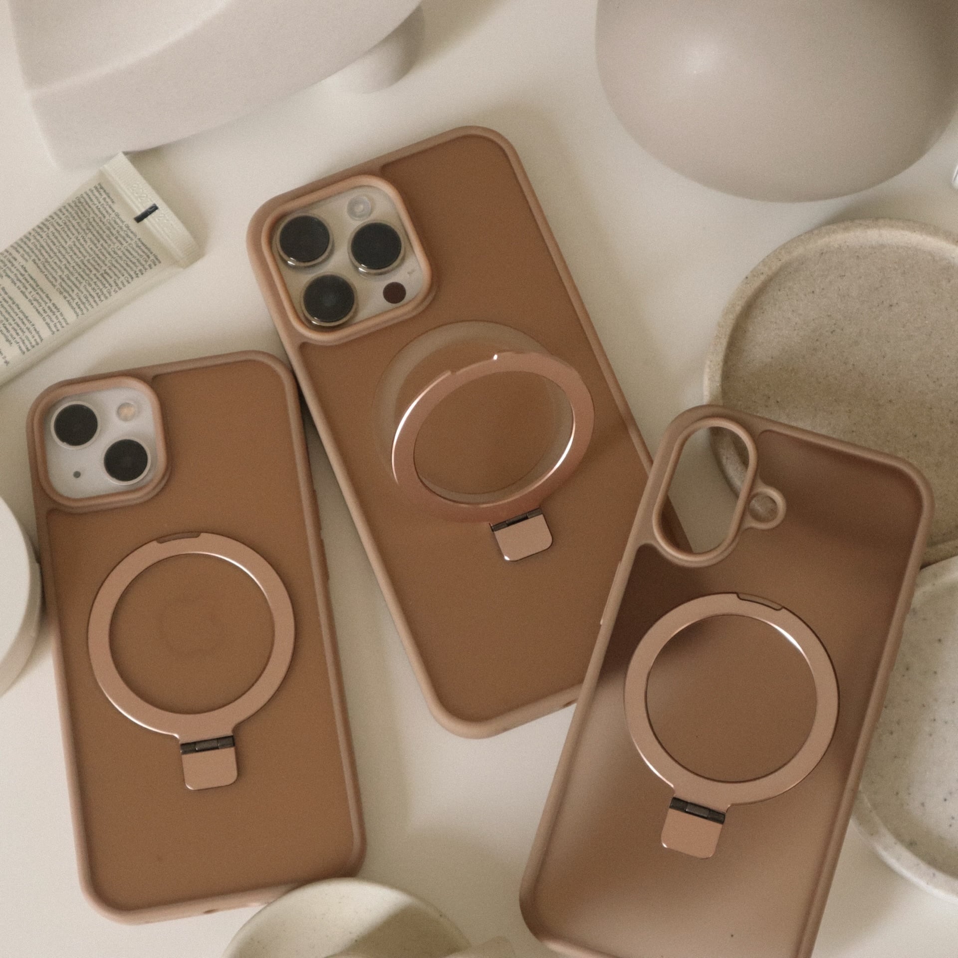 少しピンクがかったベージュが可愛過ぎる半透明ケース。Magsafe部分はスマホリングやスタンドとしても利用でき、便利なケースです♩
