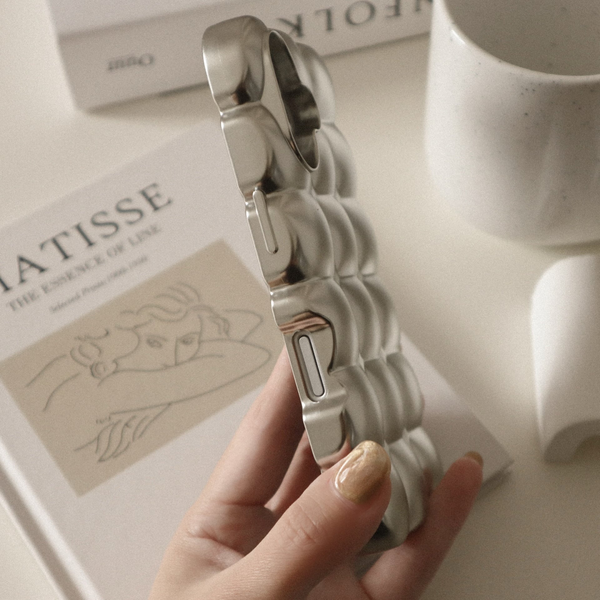 大人気韓国系ケース、poco pocoと同デザインになります♩マットシルバーで更にお洒落感増し増し、凹凸で持ちやすさも◎。