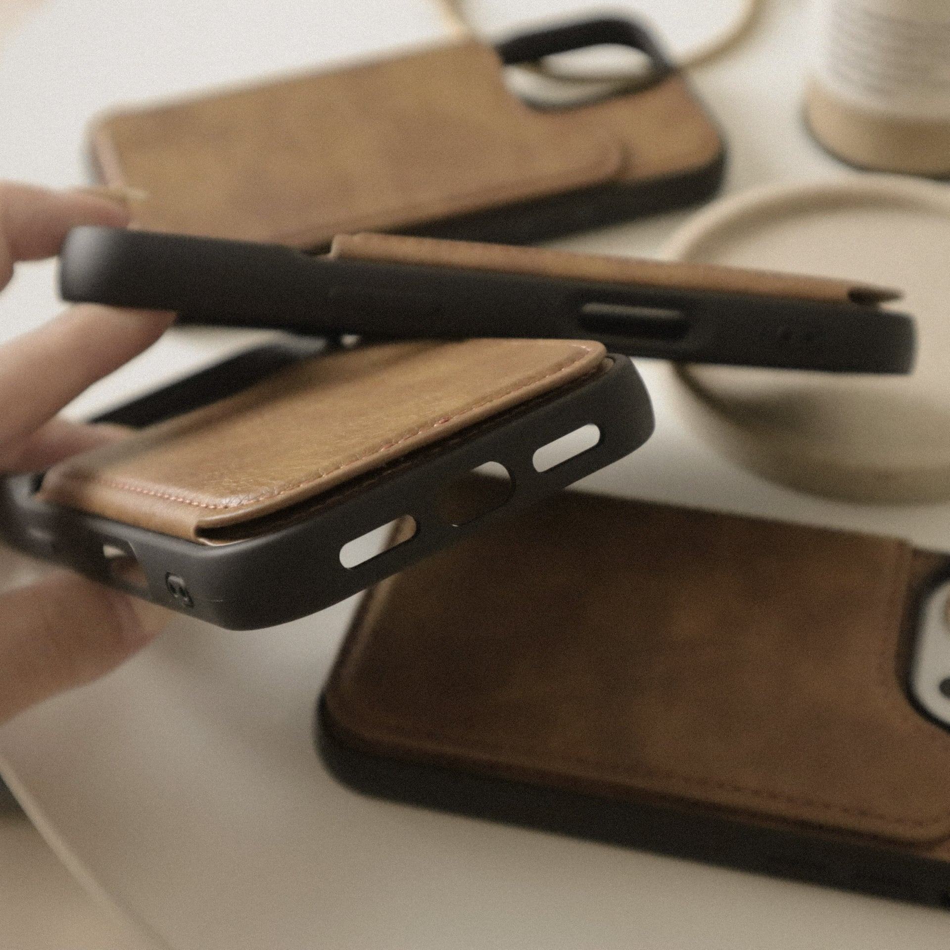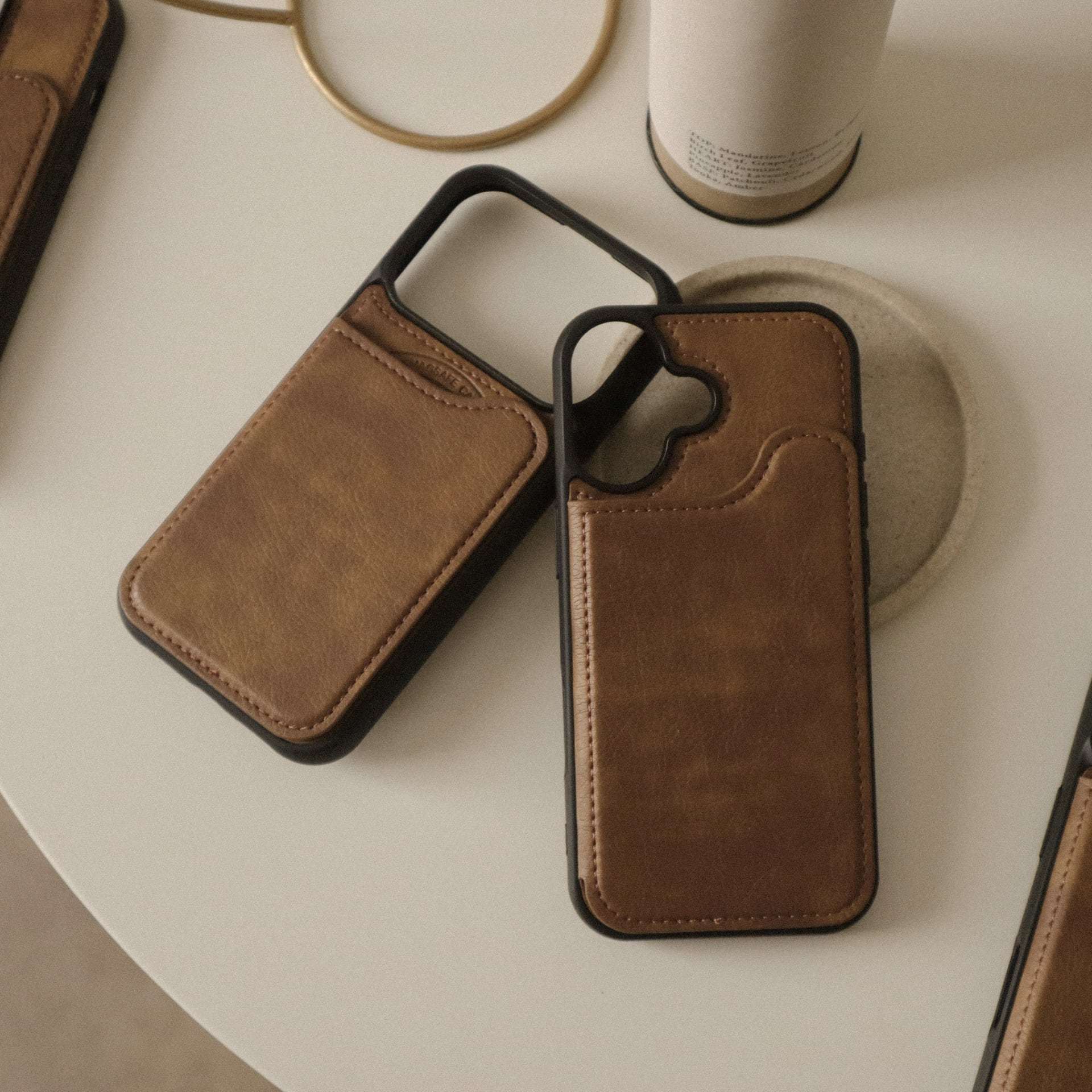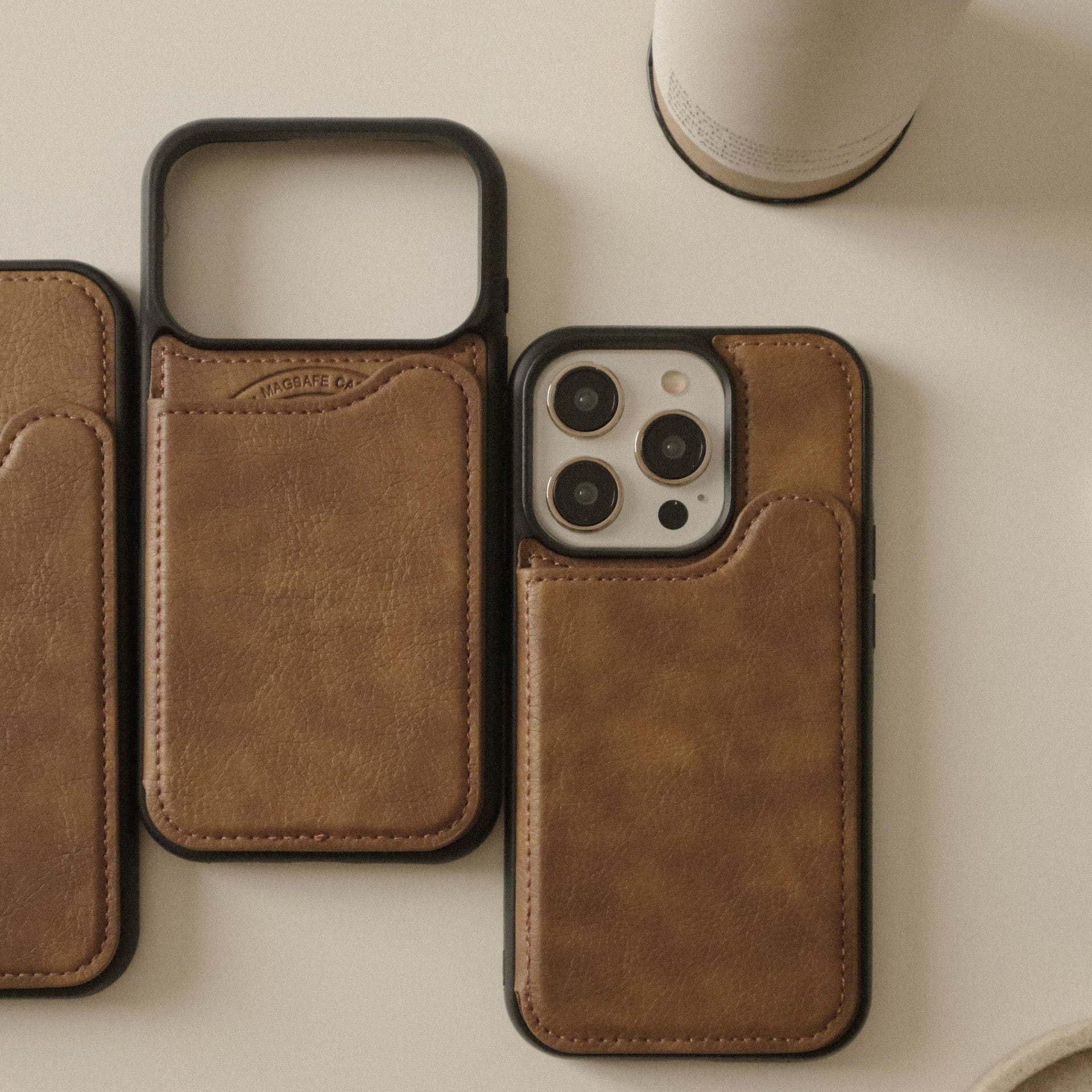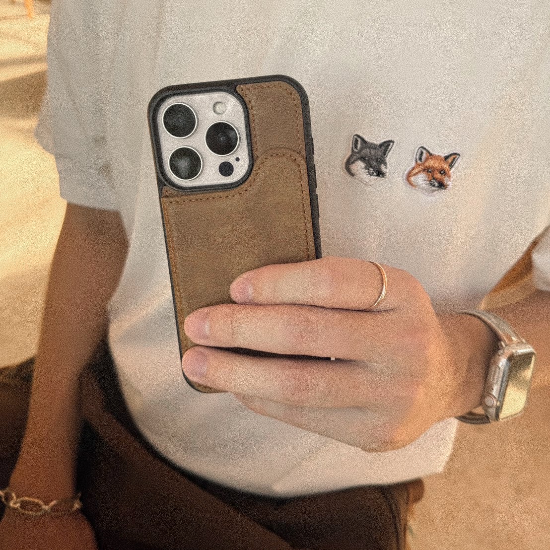 まだらなレザーが大人な、ポケット付きMagsafeケース。男性もご使用いただけます♩パートナーへのプレゼントにも◎