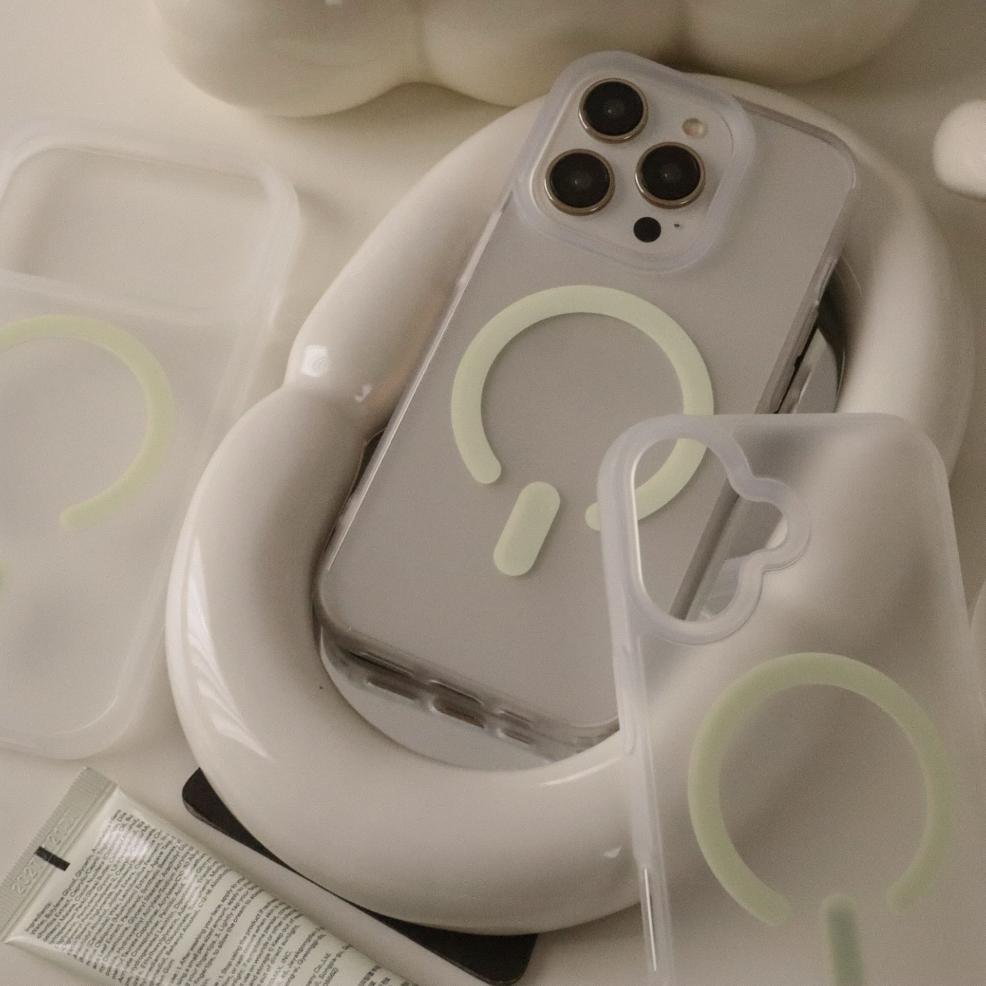 ・半透明のため、iPhoneのカラーが影響します。画像はライトゴールドのiPhoneに装着したものになります。