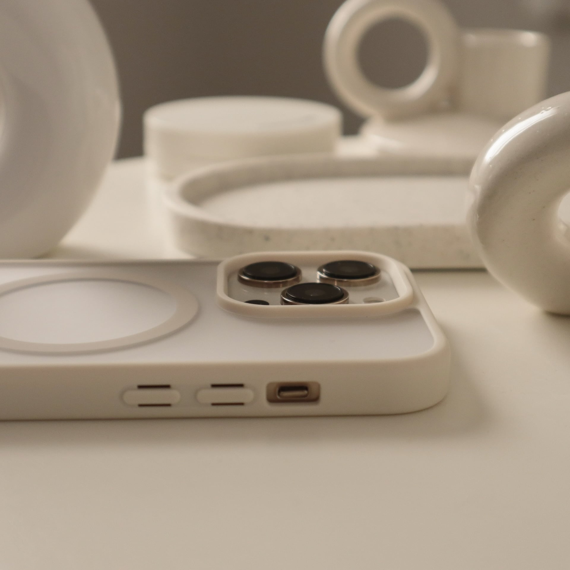 全体的にホワイトカラーな、とっても可愛いケースです♩真っ白ではなく、落ち着いたオフホワイトなのも◎