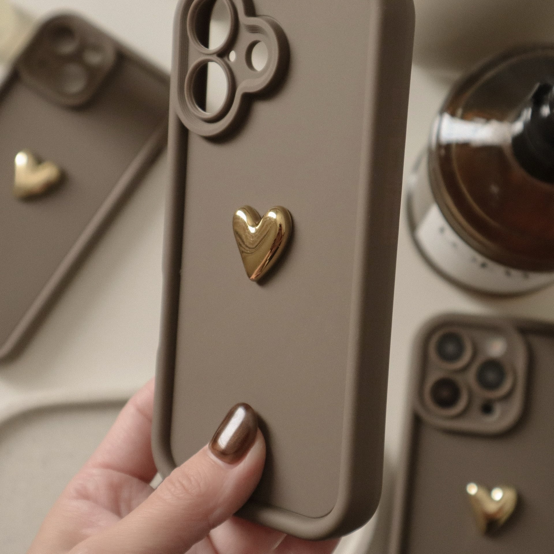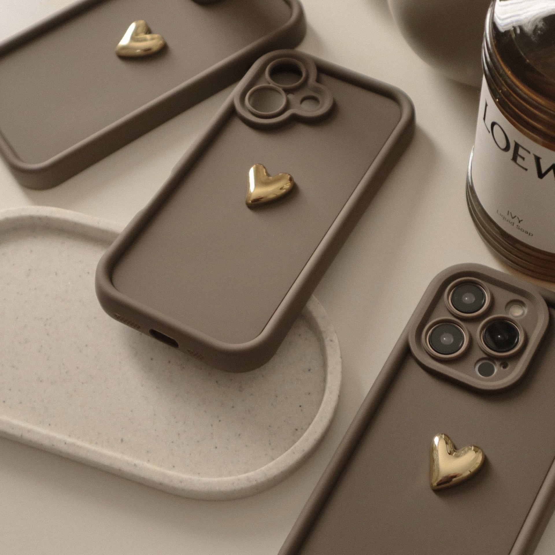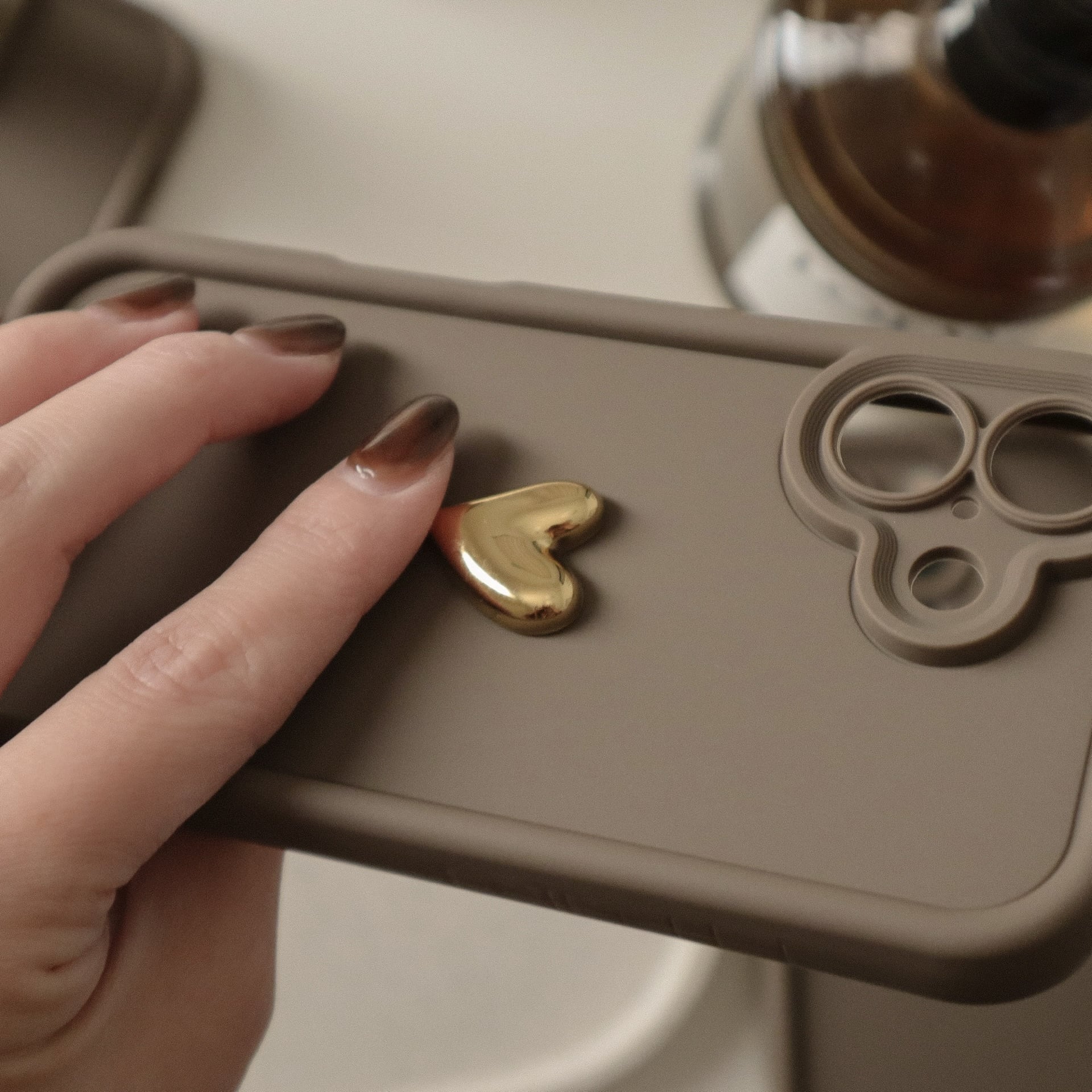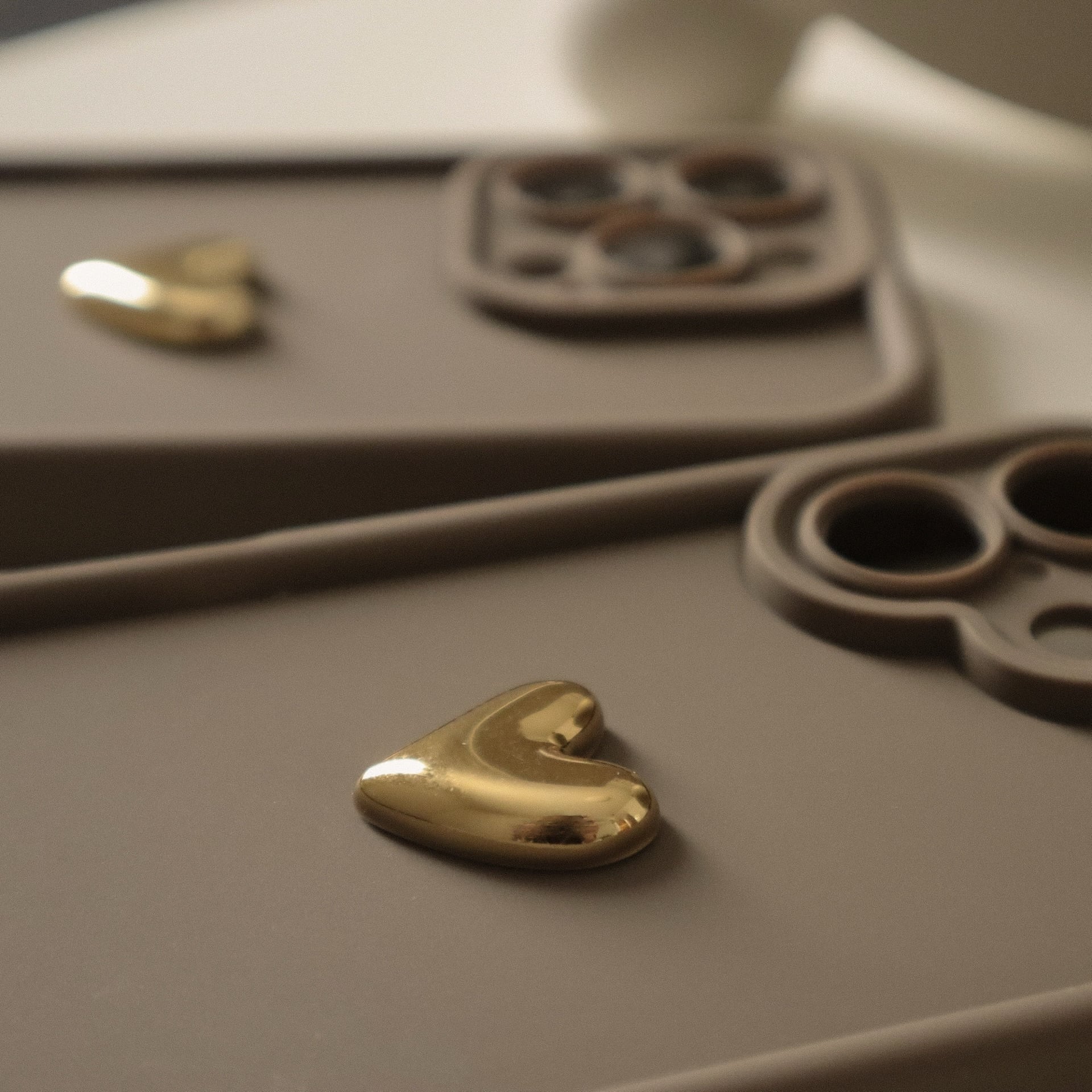ゴールドのぷっくりハートが可愛過ぎるケース。保護力良し、ボタンも押しやすくハートのおかげで持ちやすさも◎