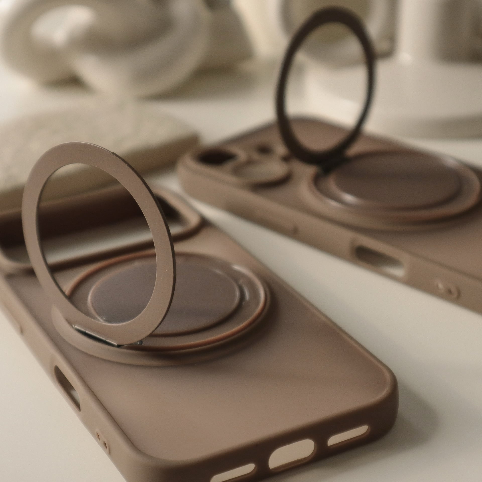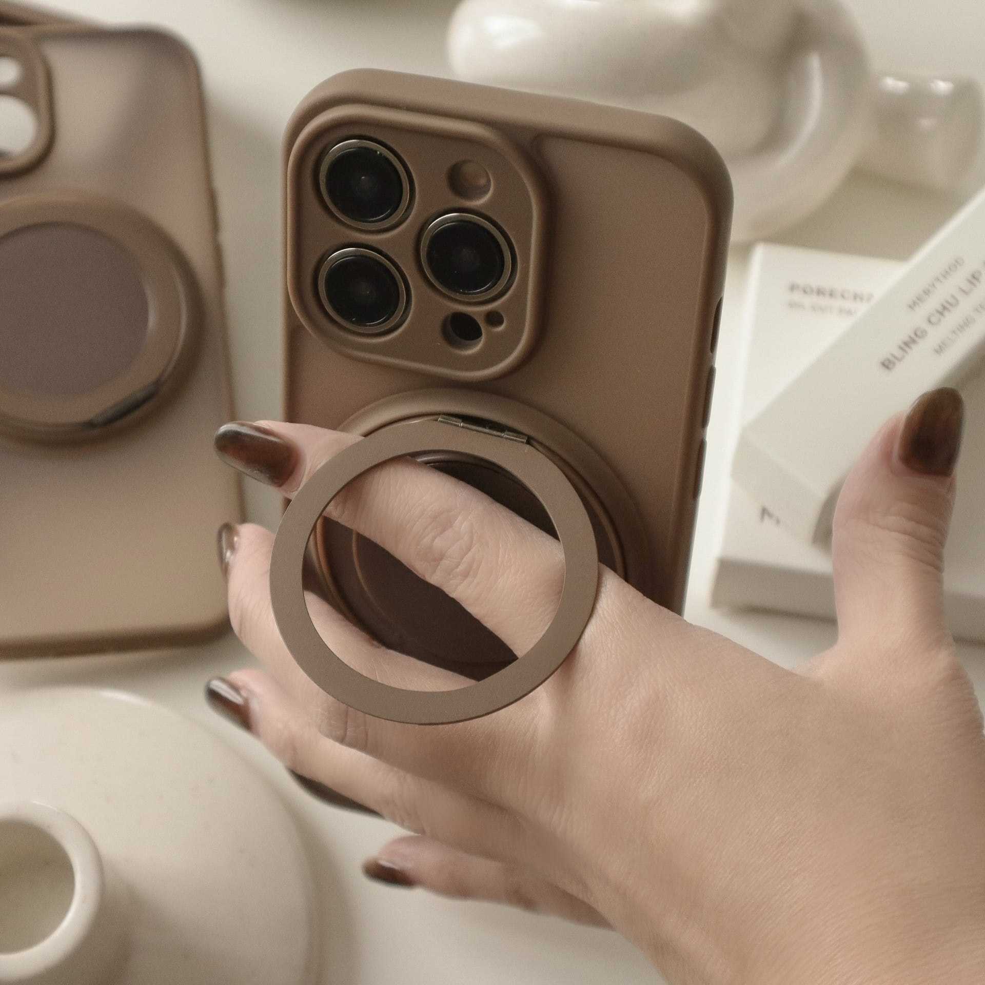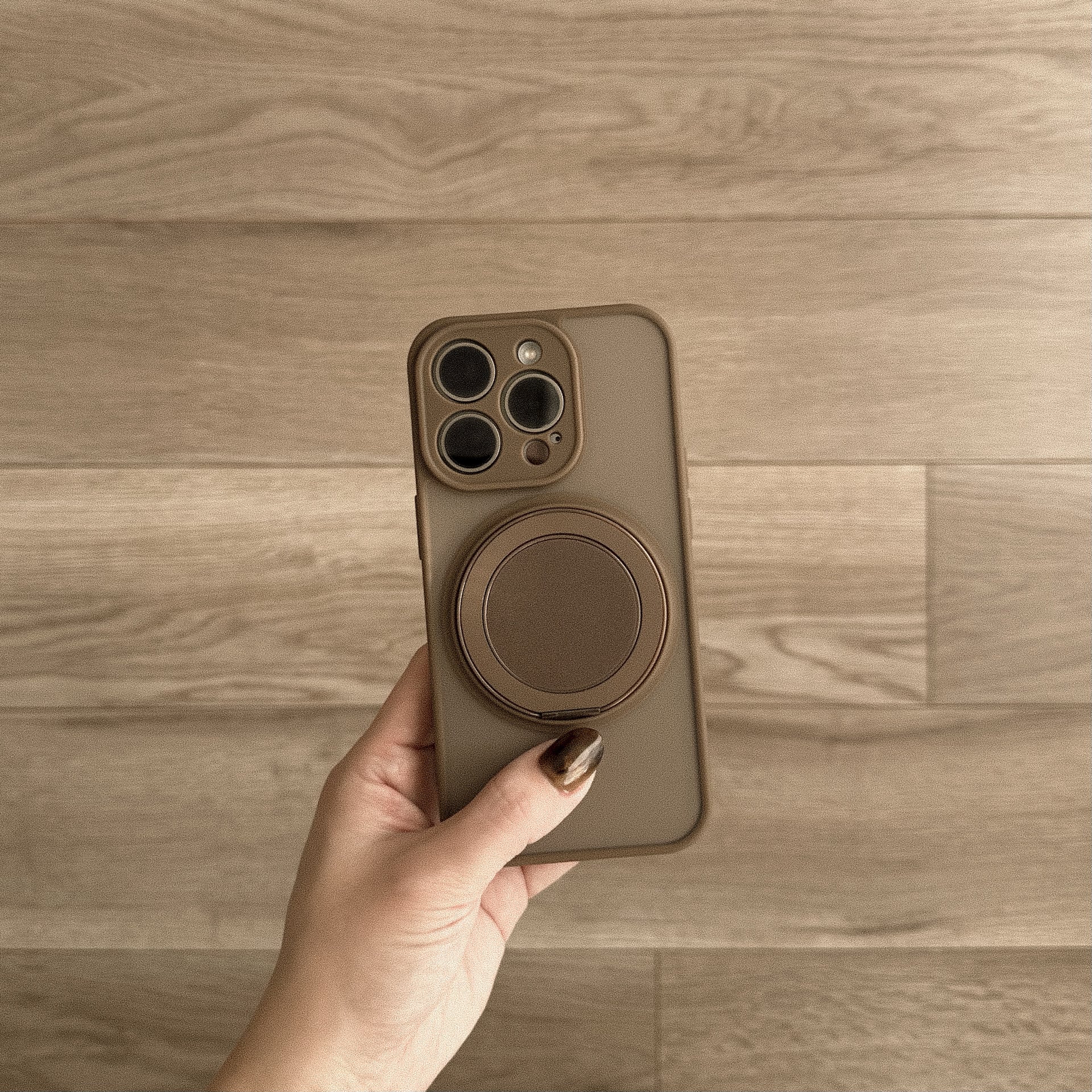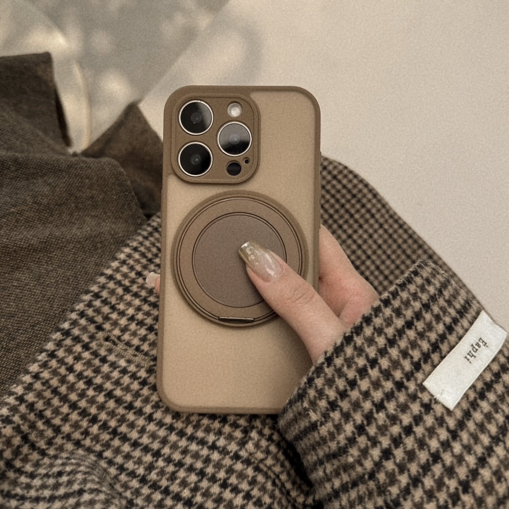 ブラウン系でまとまったカラーが可愛過ぎるケース。MagSafe部分はリングやスタンドと便利に使えます♩