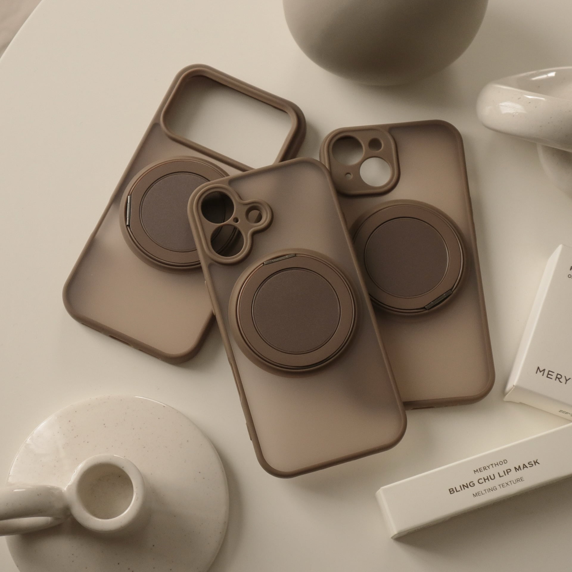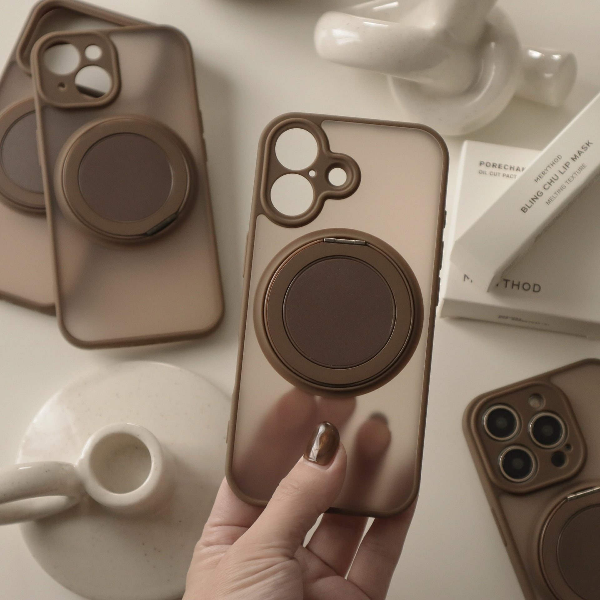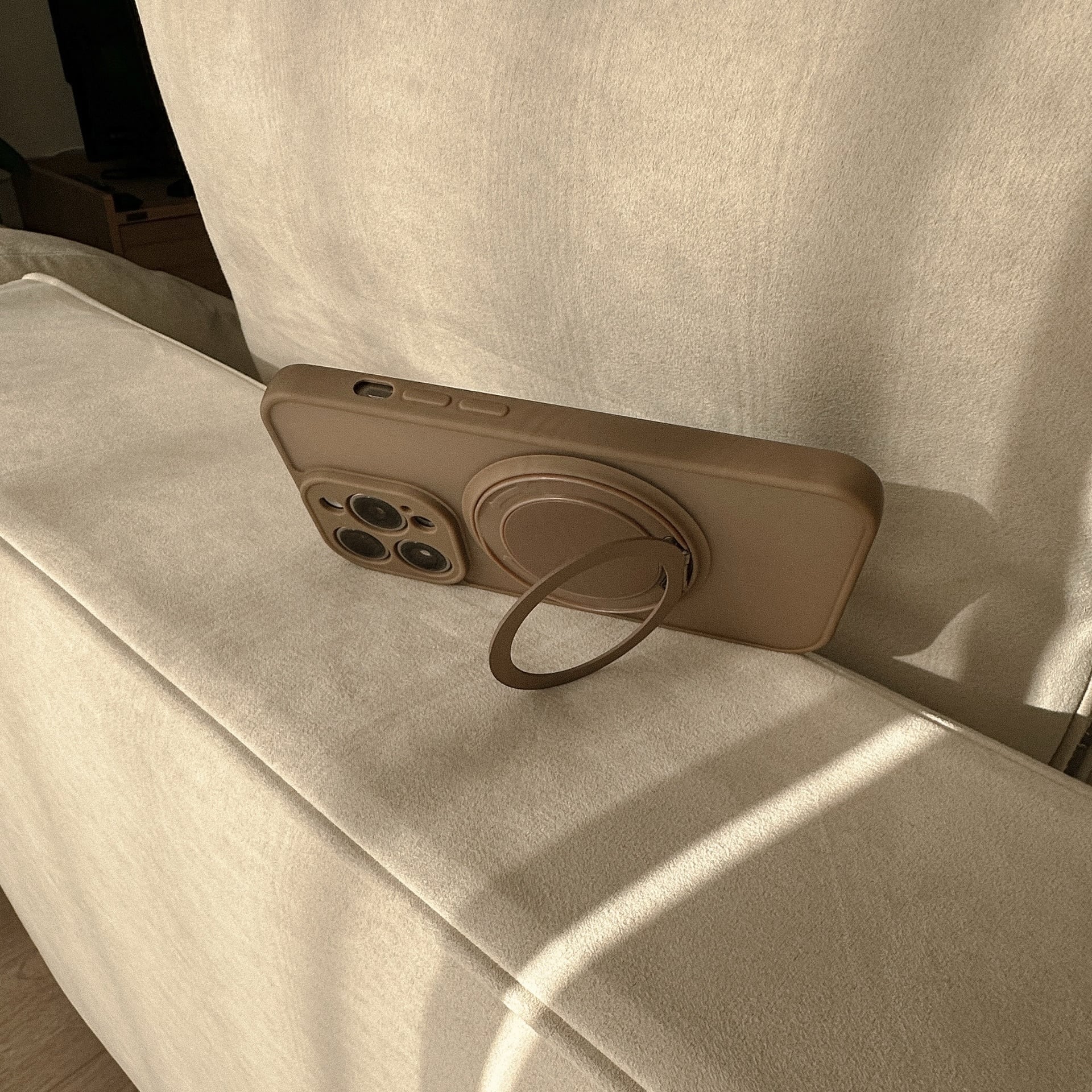 ブラウン系でまとまったカラーが可愛過ぎるケース。MagSafe部分はリングやスタンドと便利に使えます♩