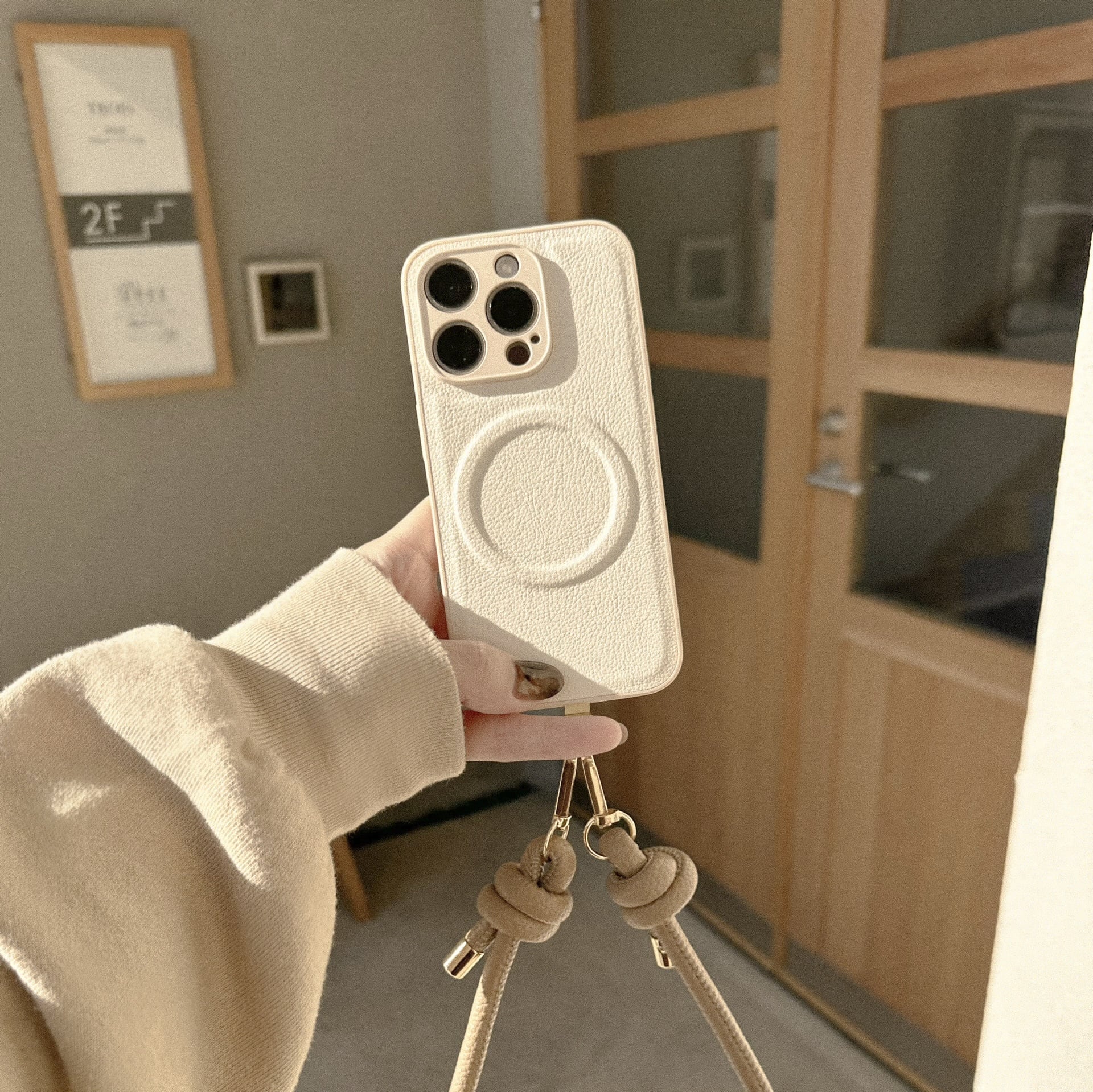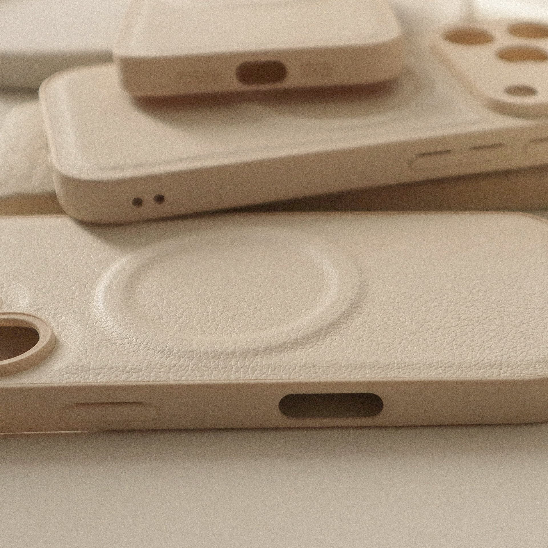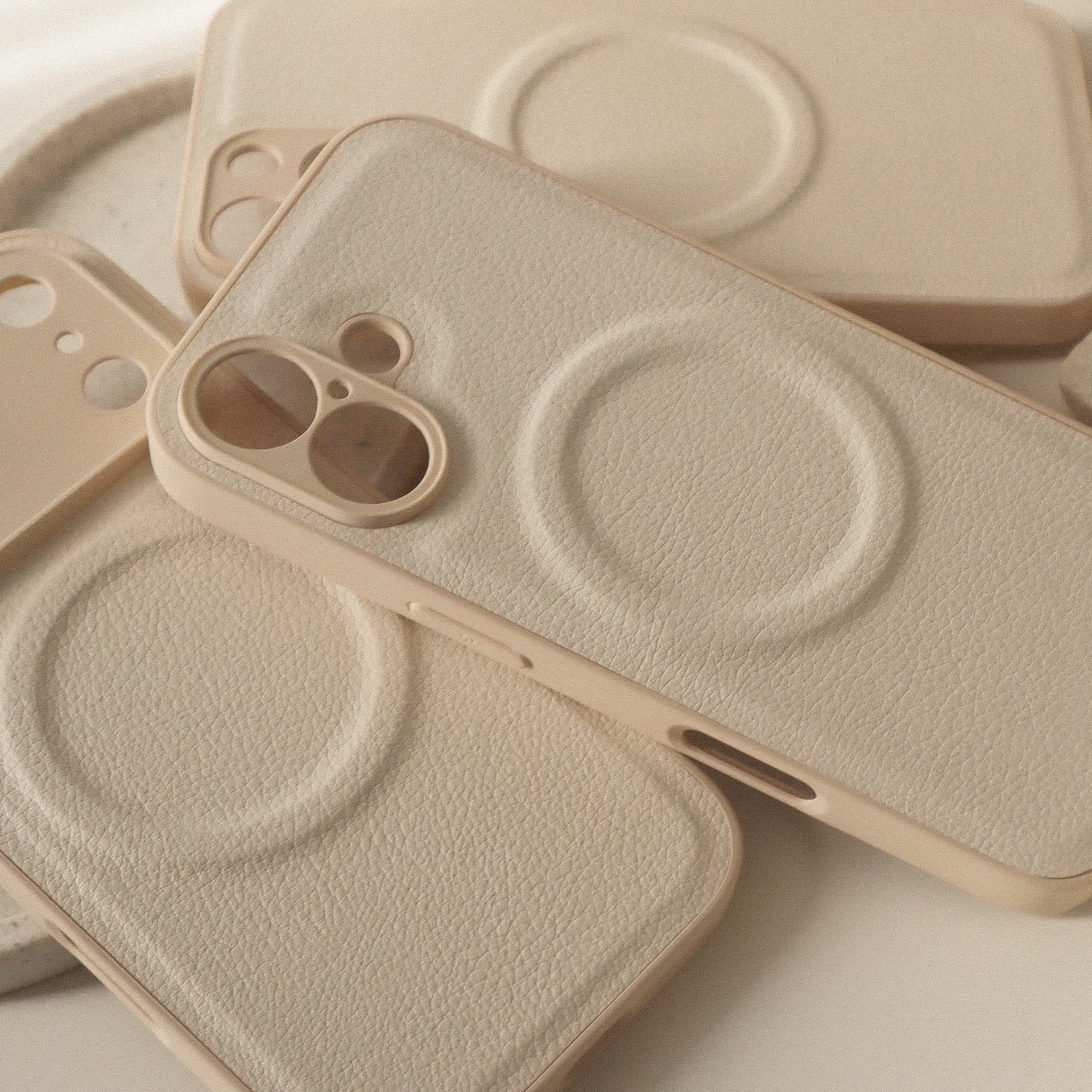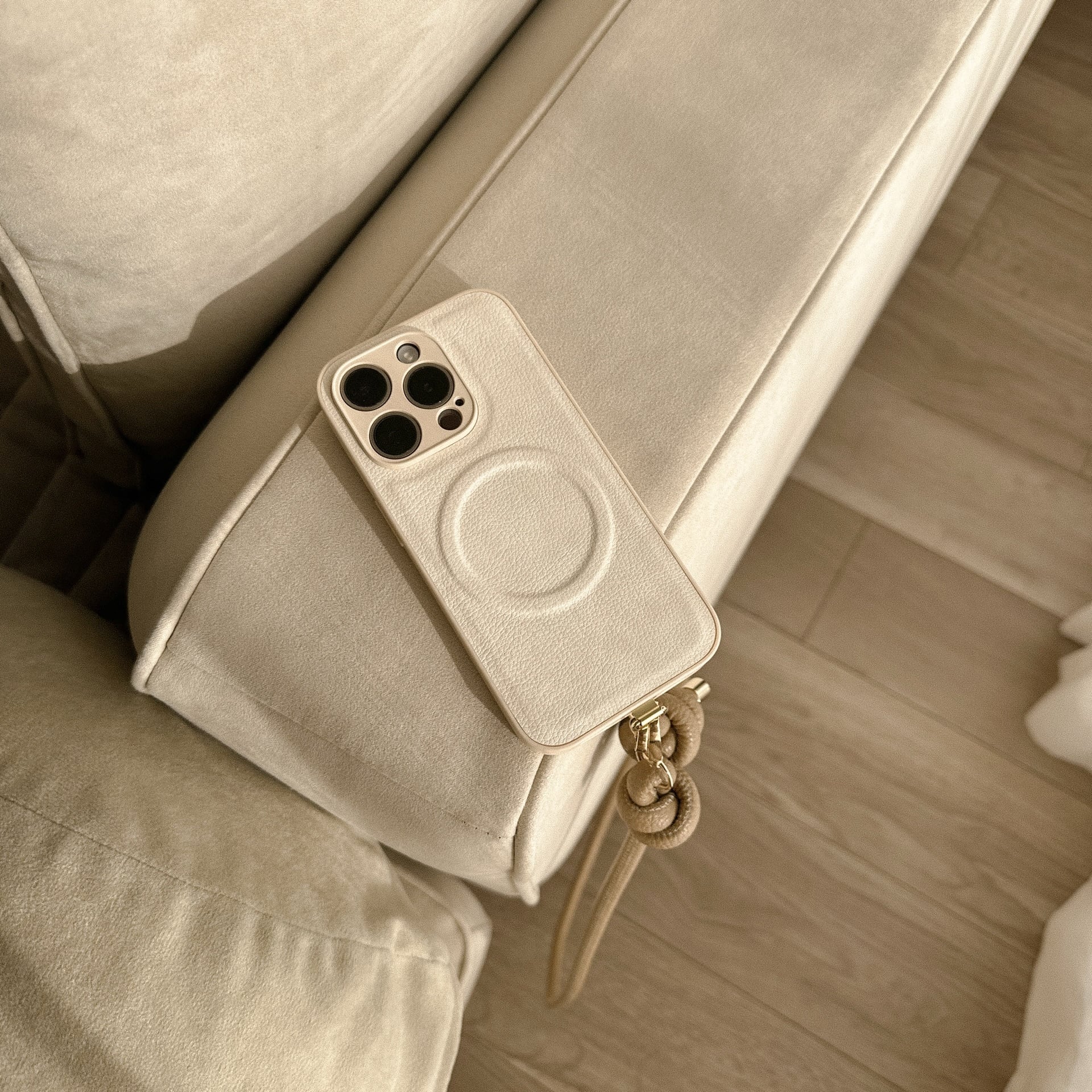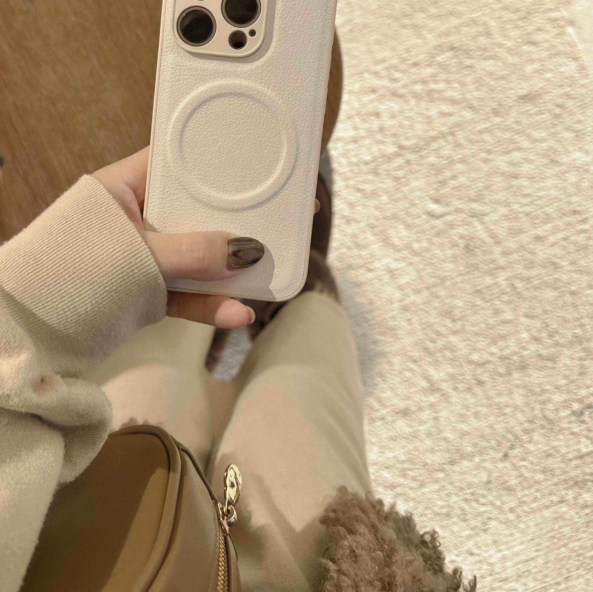 オフホワイト系でまとまったカラーとぷっくりMagSafeリングが可愛過ぎる、女子力高めのケース♩軽量なのも◎