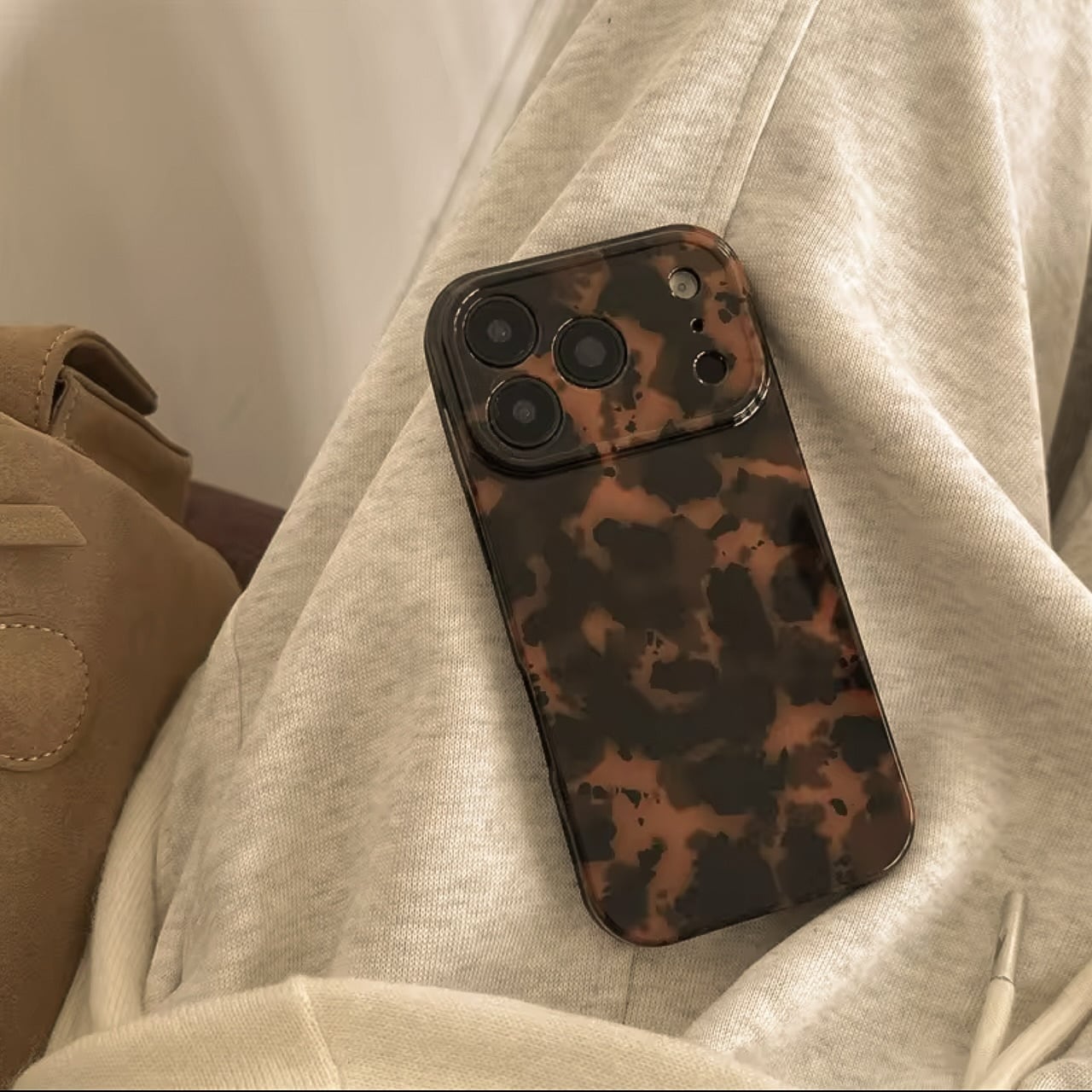 ちゅるんべっ甲柄がお洒落なスリムケース。ファッションの一部としても存在感◎。