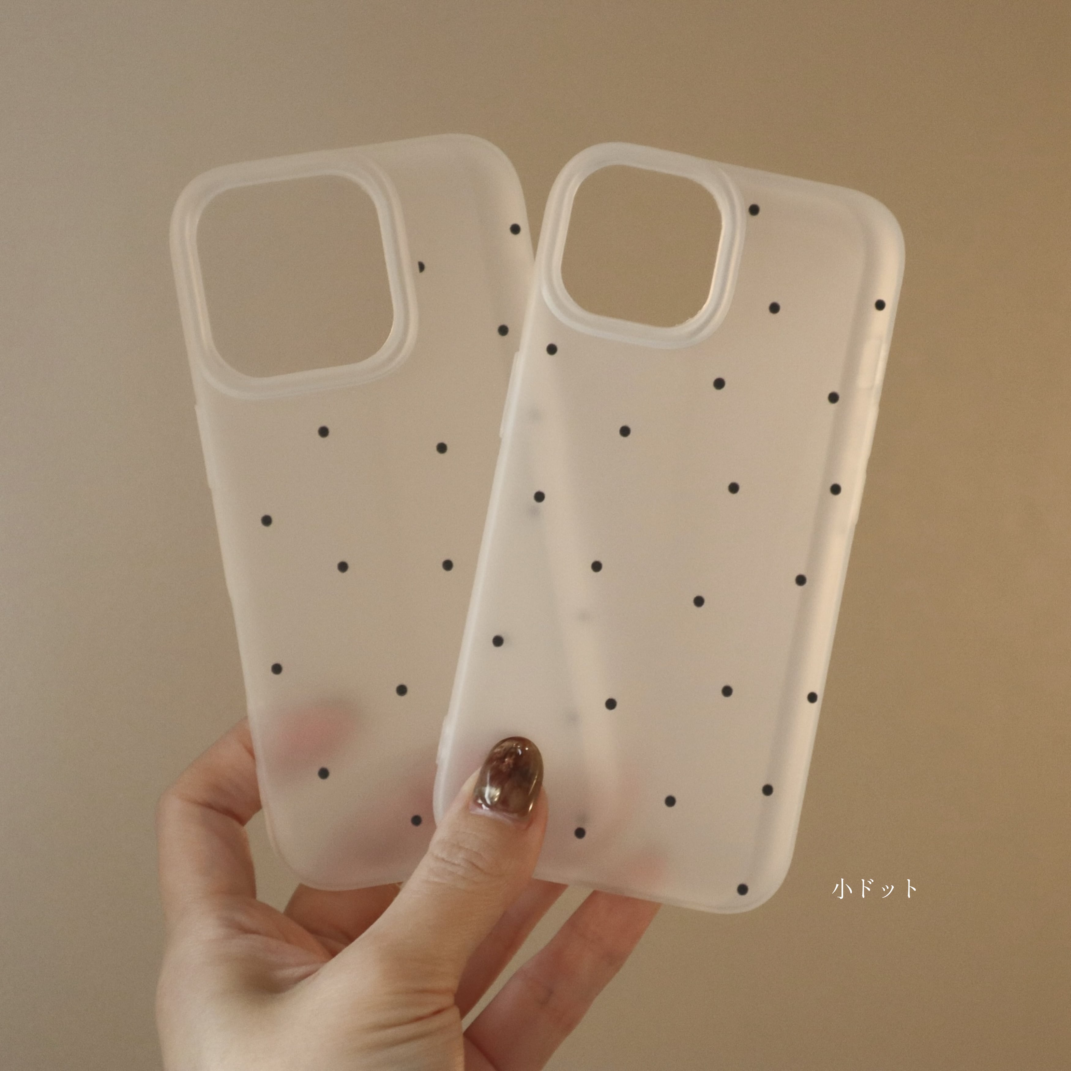 シンプルなドットデザインが可愛い半透明ケース。透け感がありながらもマットな表面なので指紋が付きにくいです♩