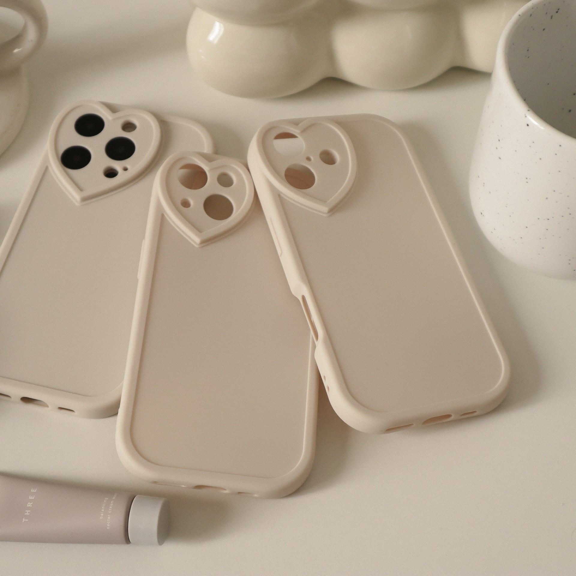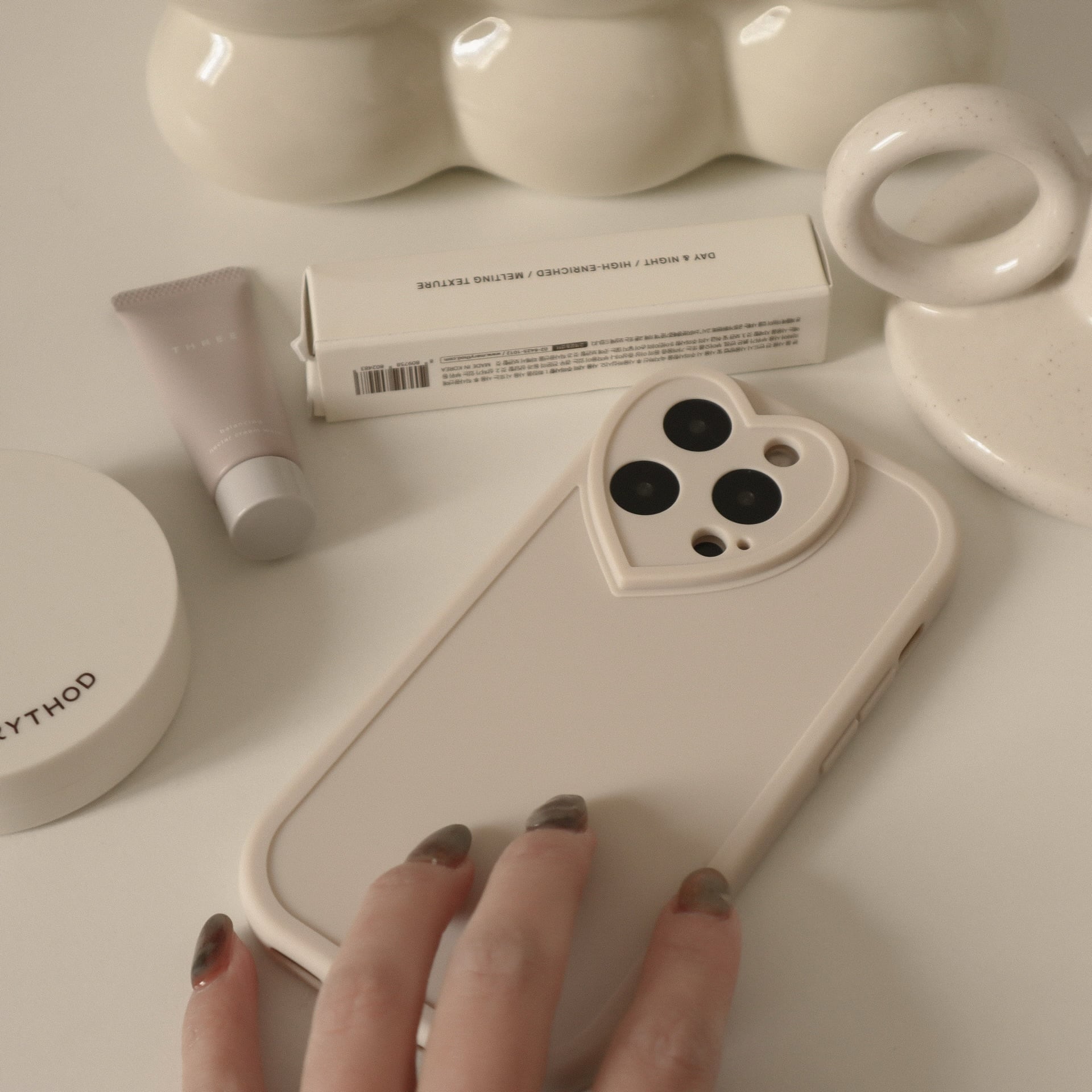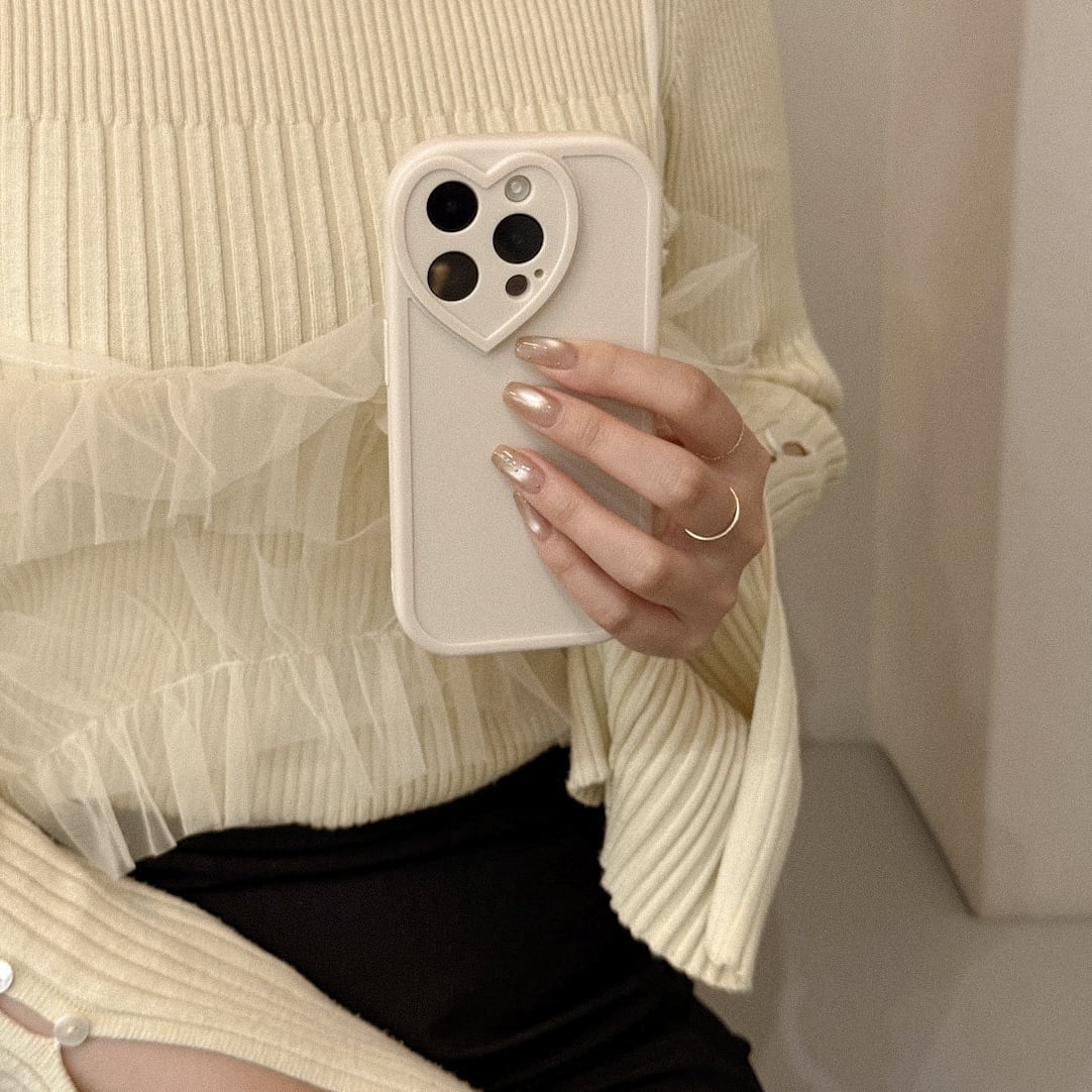 カメラフレームがハートなのが可愛過ぎるシンプルホワイトケース。自撮り映えも♩