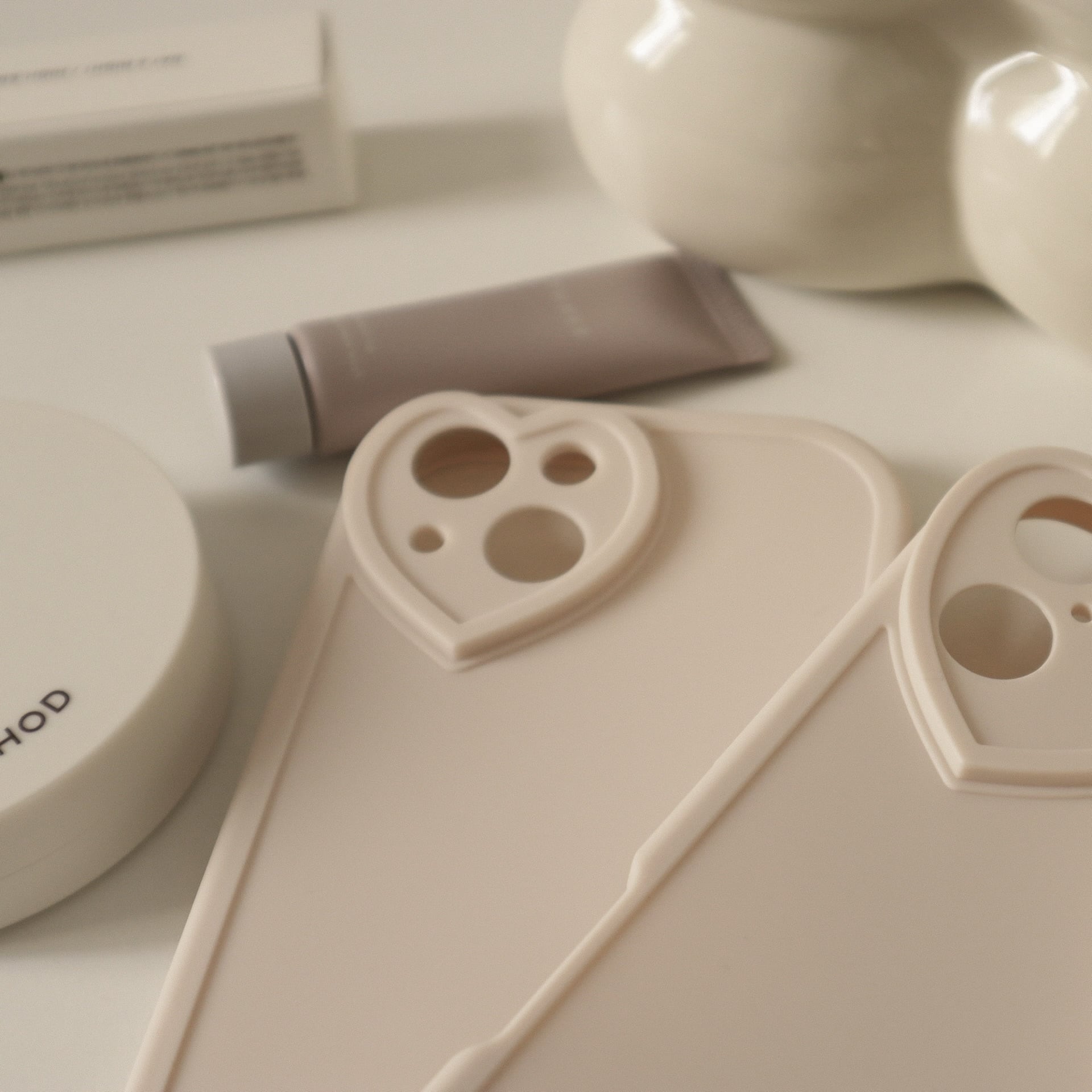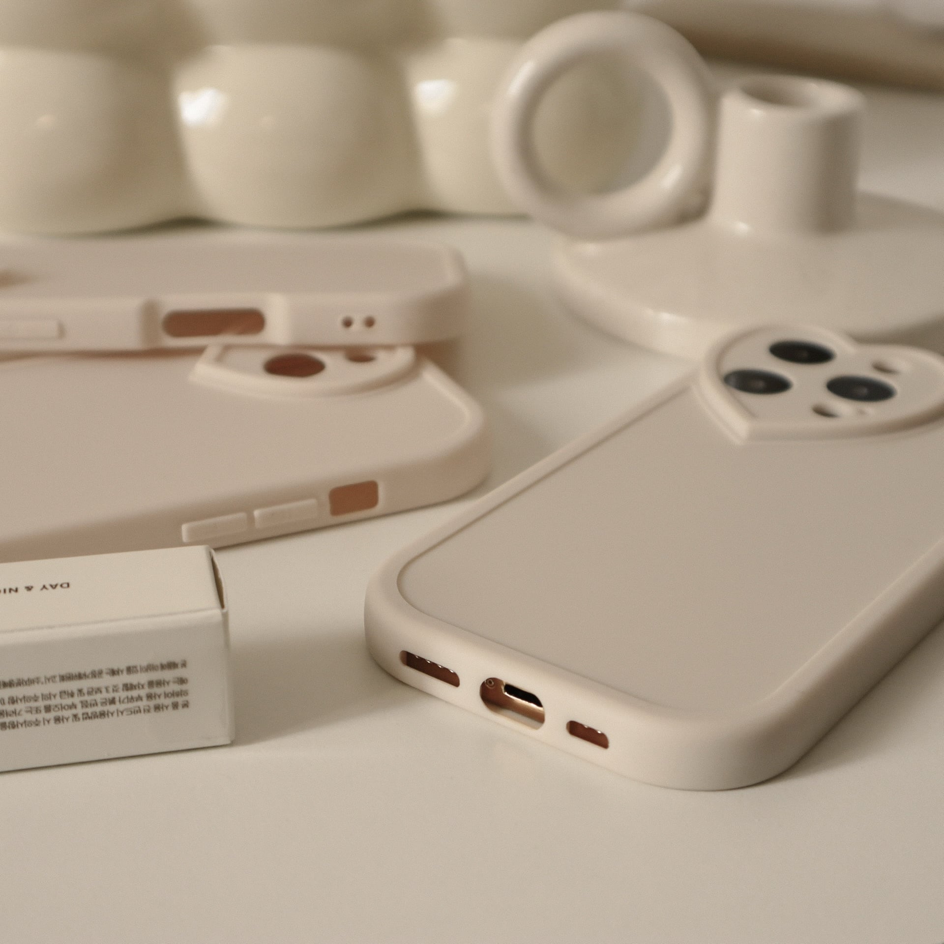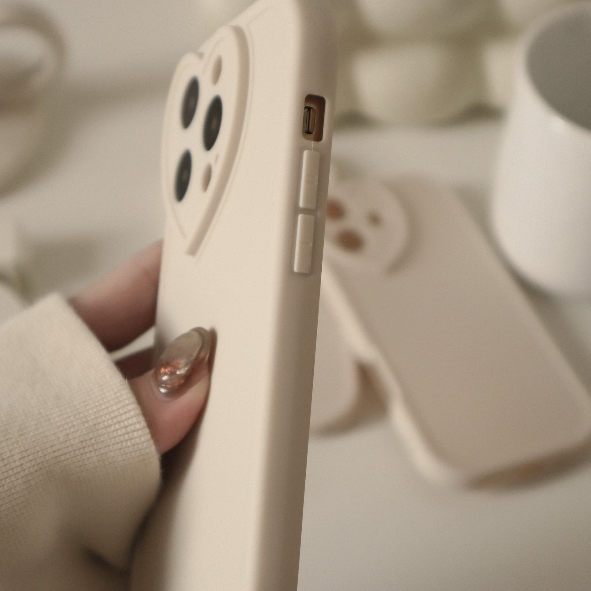 カメラフレームがハートなのが可愛過ぎるシンプルホワイトケース。自撮り映えも♩