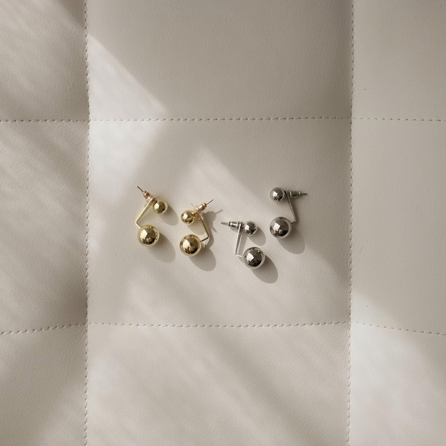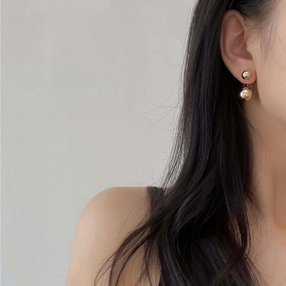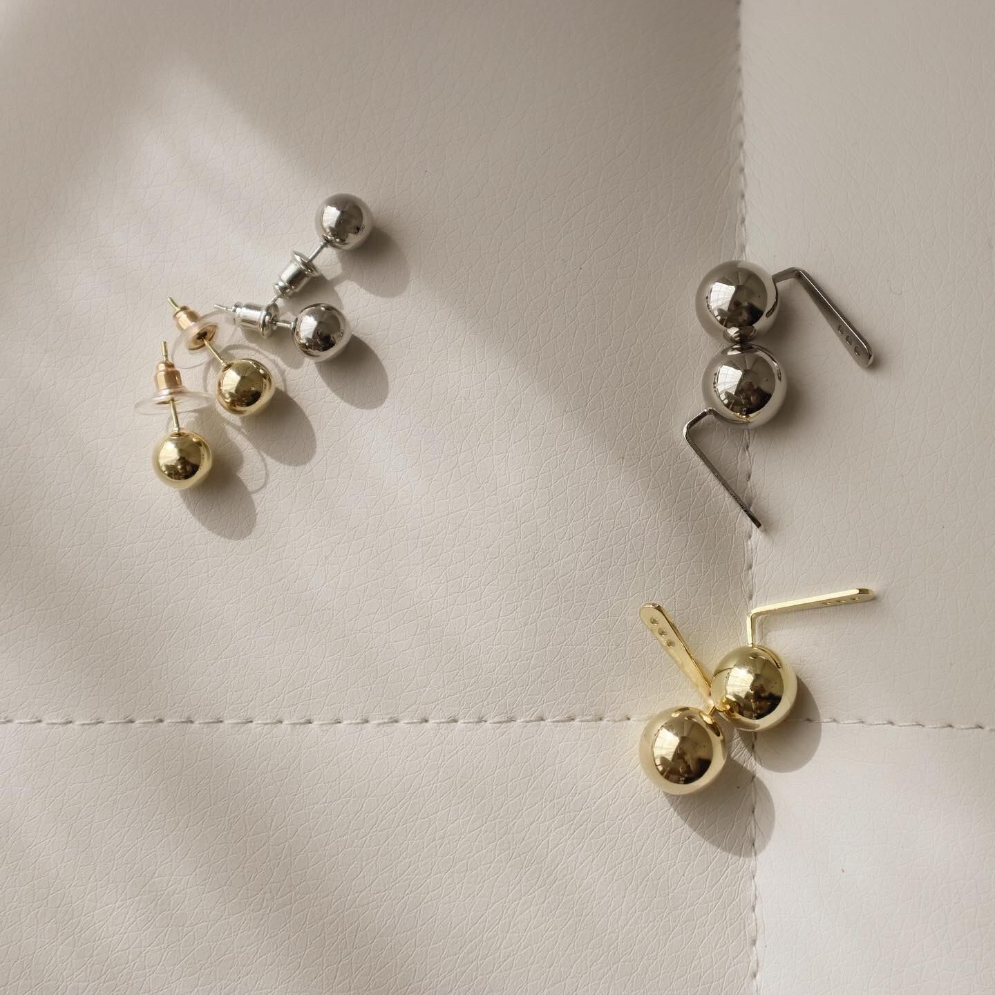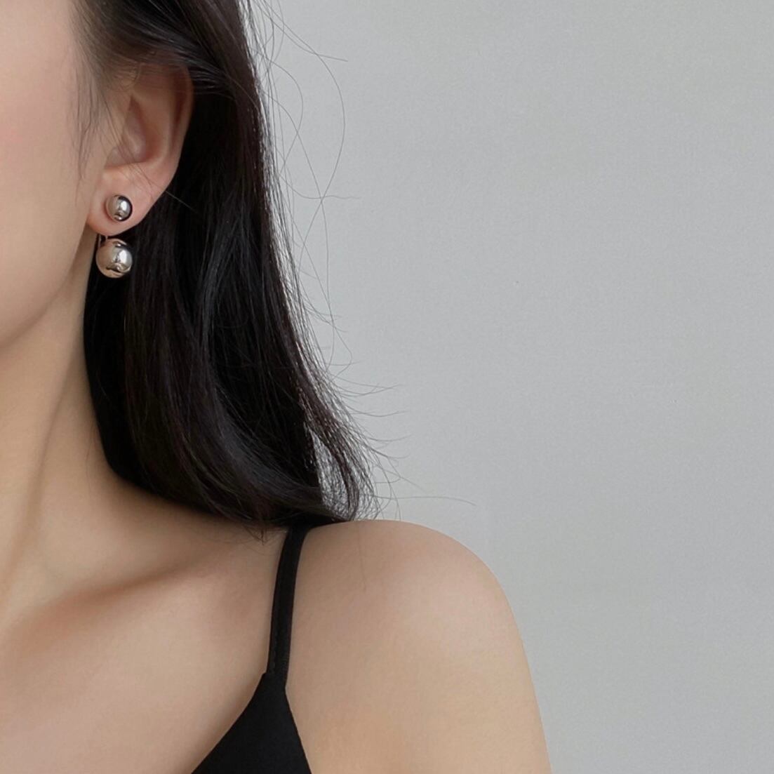小さい方のボールのみでも使用出来て2wayなお洒落デザインピアス♩