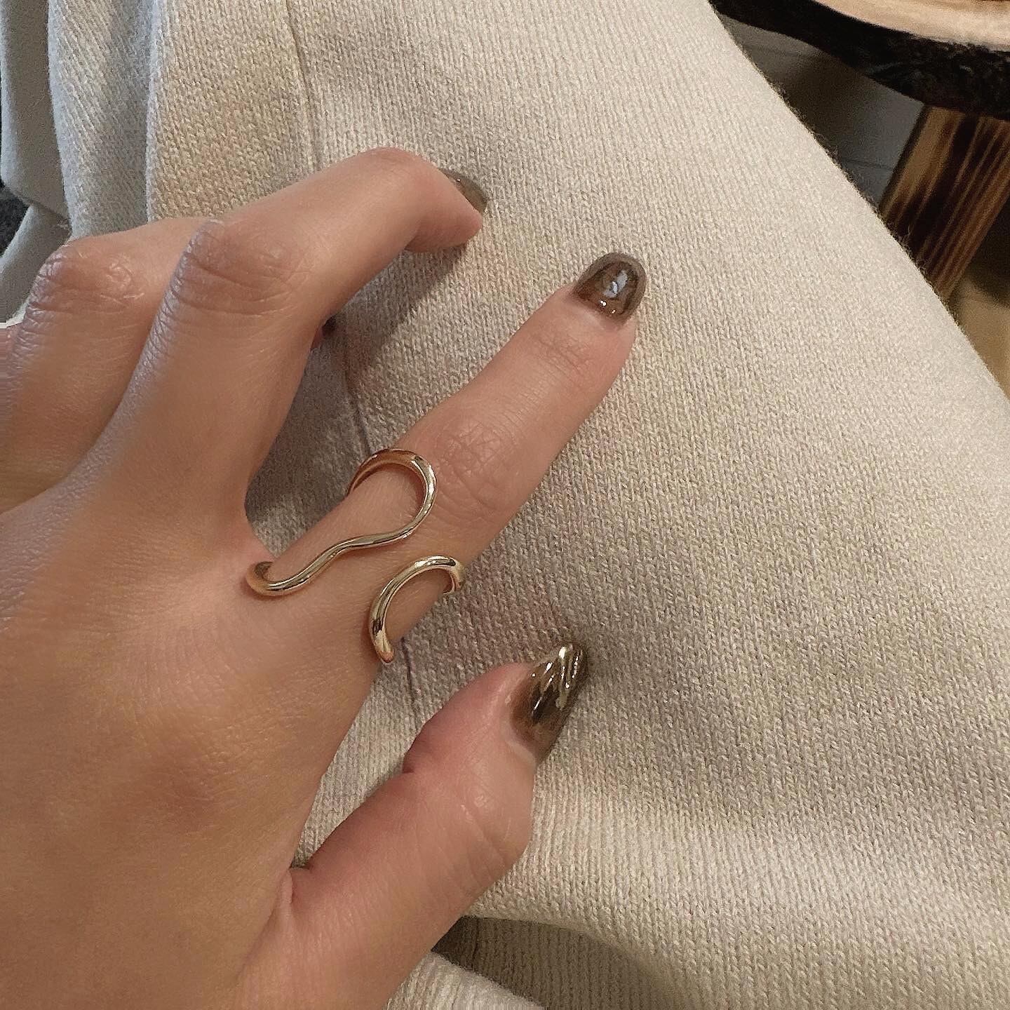細ラインなのに大きめデザインで、上品さと存在感を兼ね備えているお洒落リング♩
