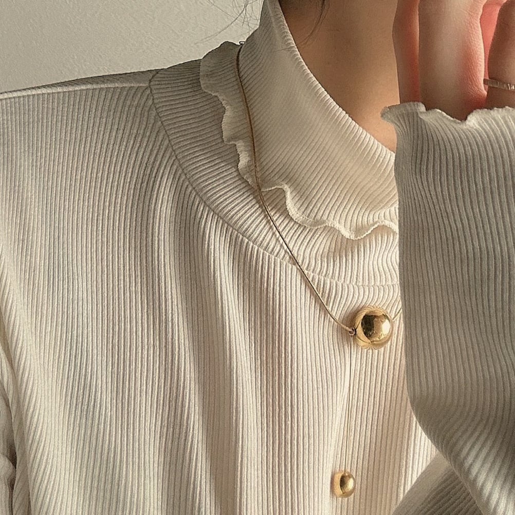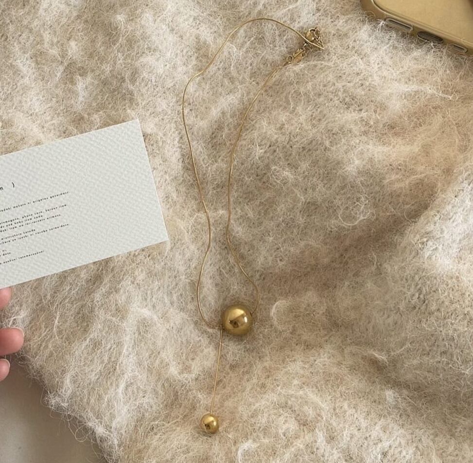 少し重みのあるボールと垂れるスティック、そして細めのロープチェーンがお洒落過ぎる高みえ高品質ネックレス♩おすすめです!◎