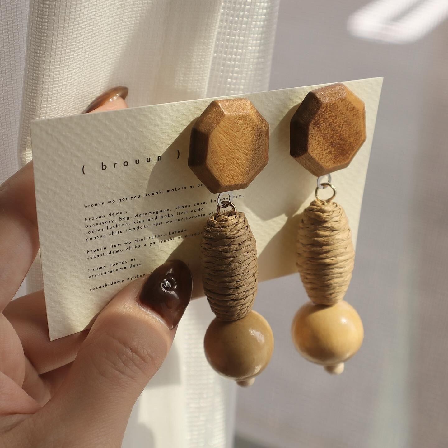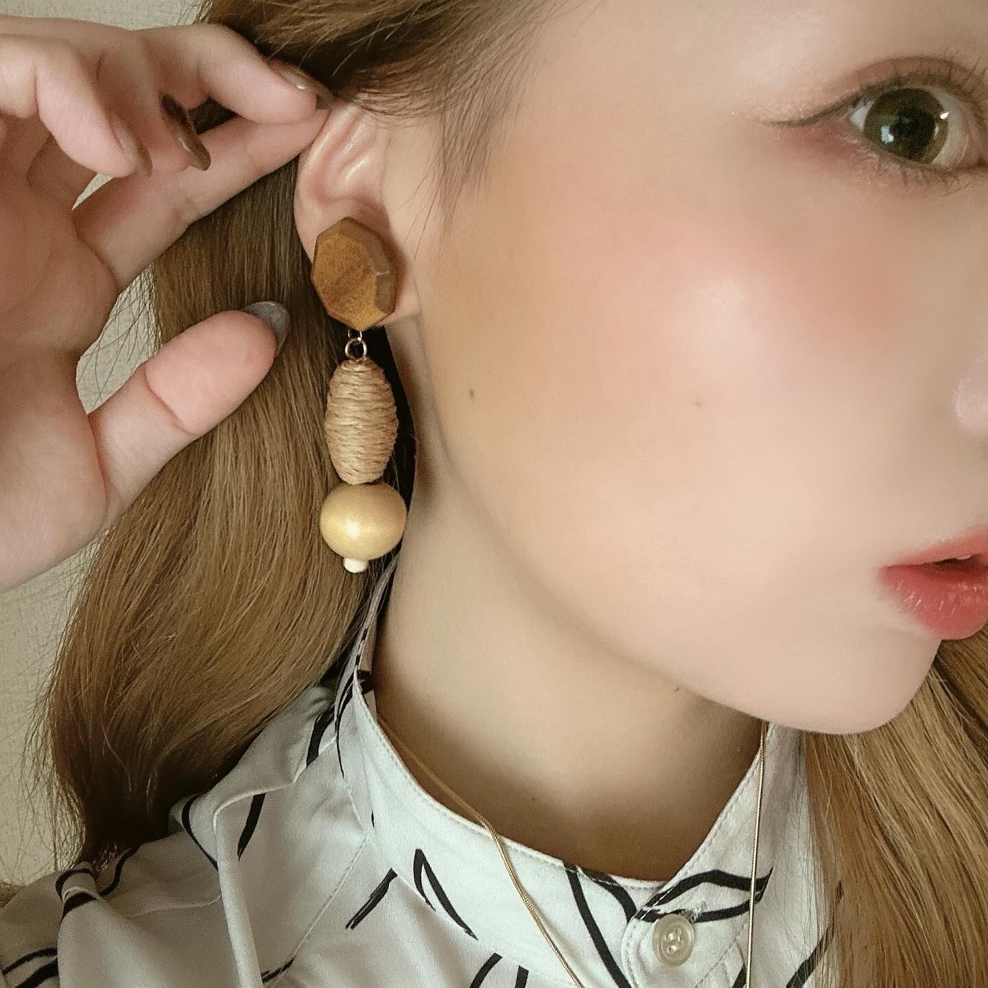 連なる木製パーツが重厚感を醸し出す高見えピアス♩色合いもとーっても可愛いです!◎