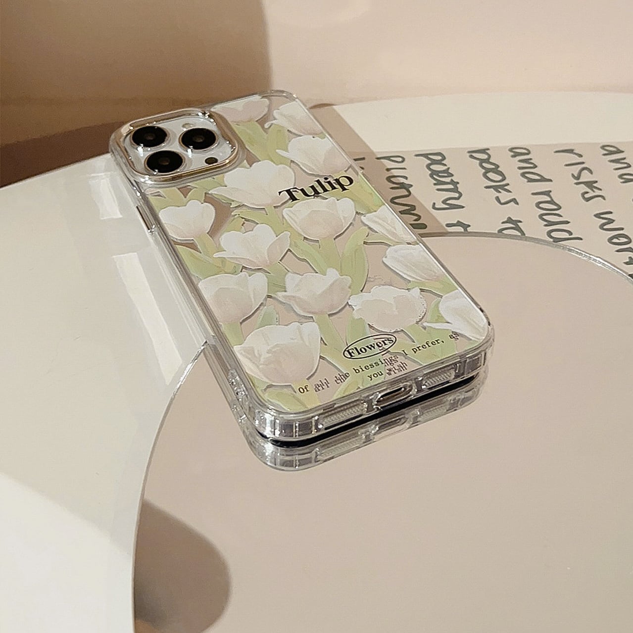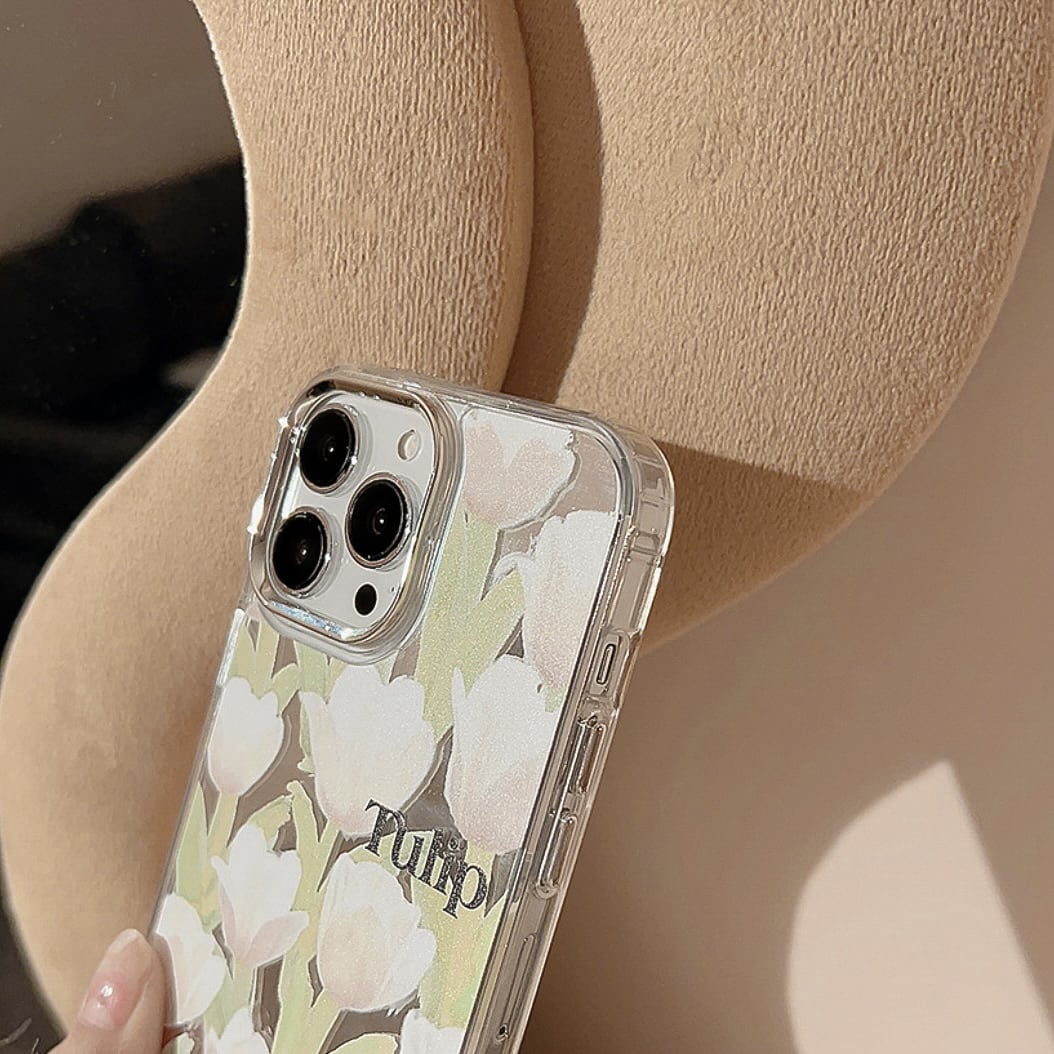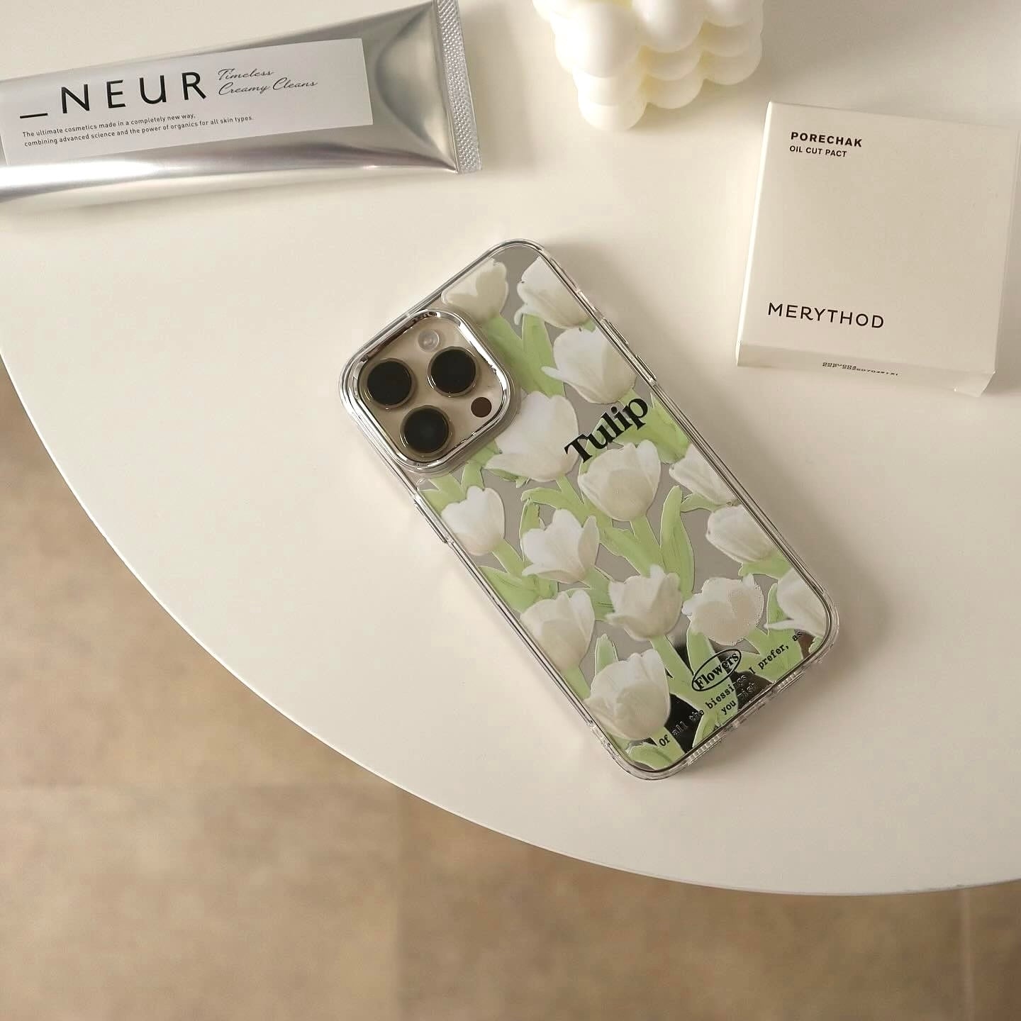 the韓国系デザインのチューリップケース♩さりげなくミラー素材のため、ちょっとしたフェイスチェックも可能◎