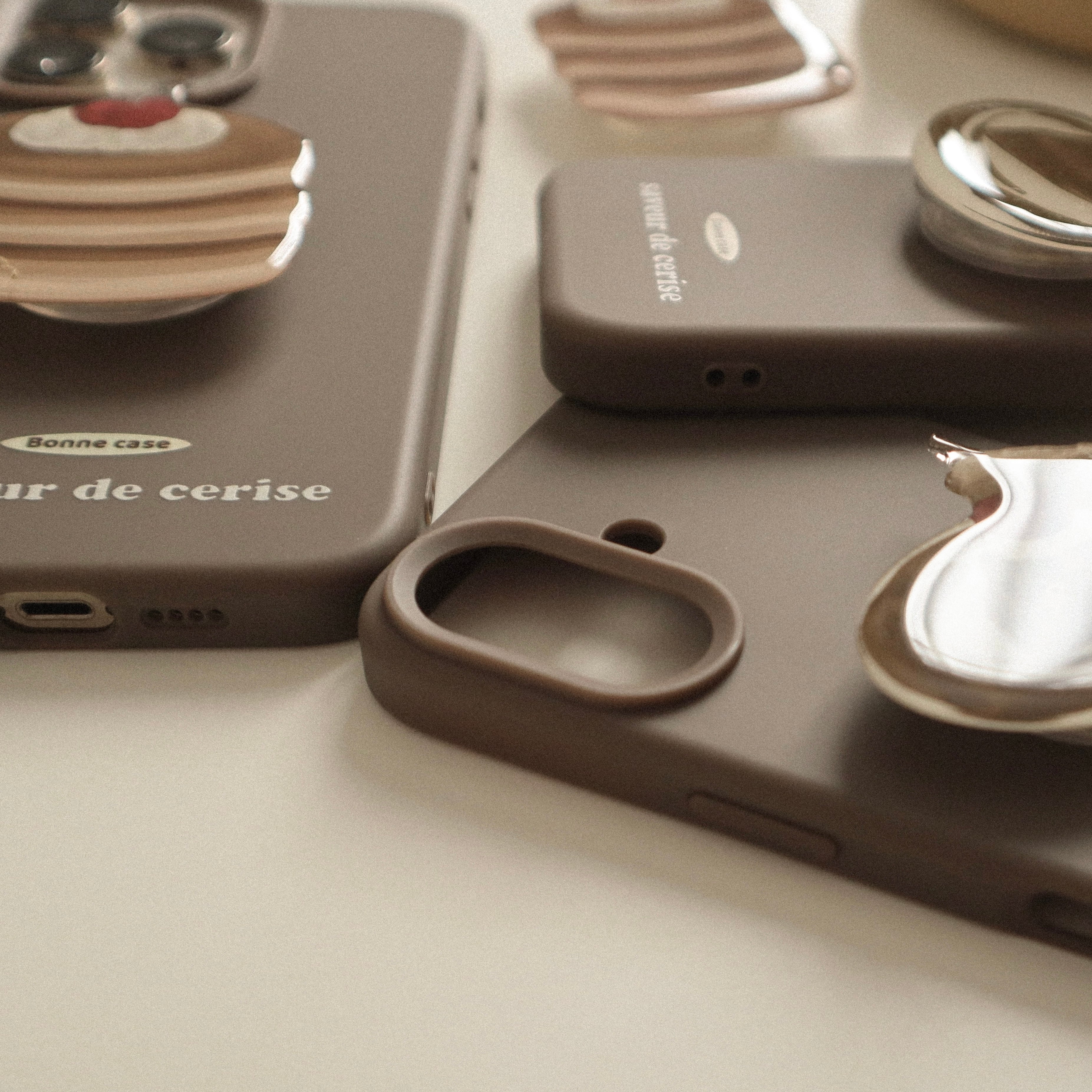 スイーツのグリップが可愛過ぎる、ブラウン系でまとまるケースです♩グリップ付きでコスパも◎